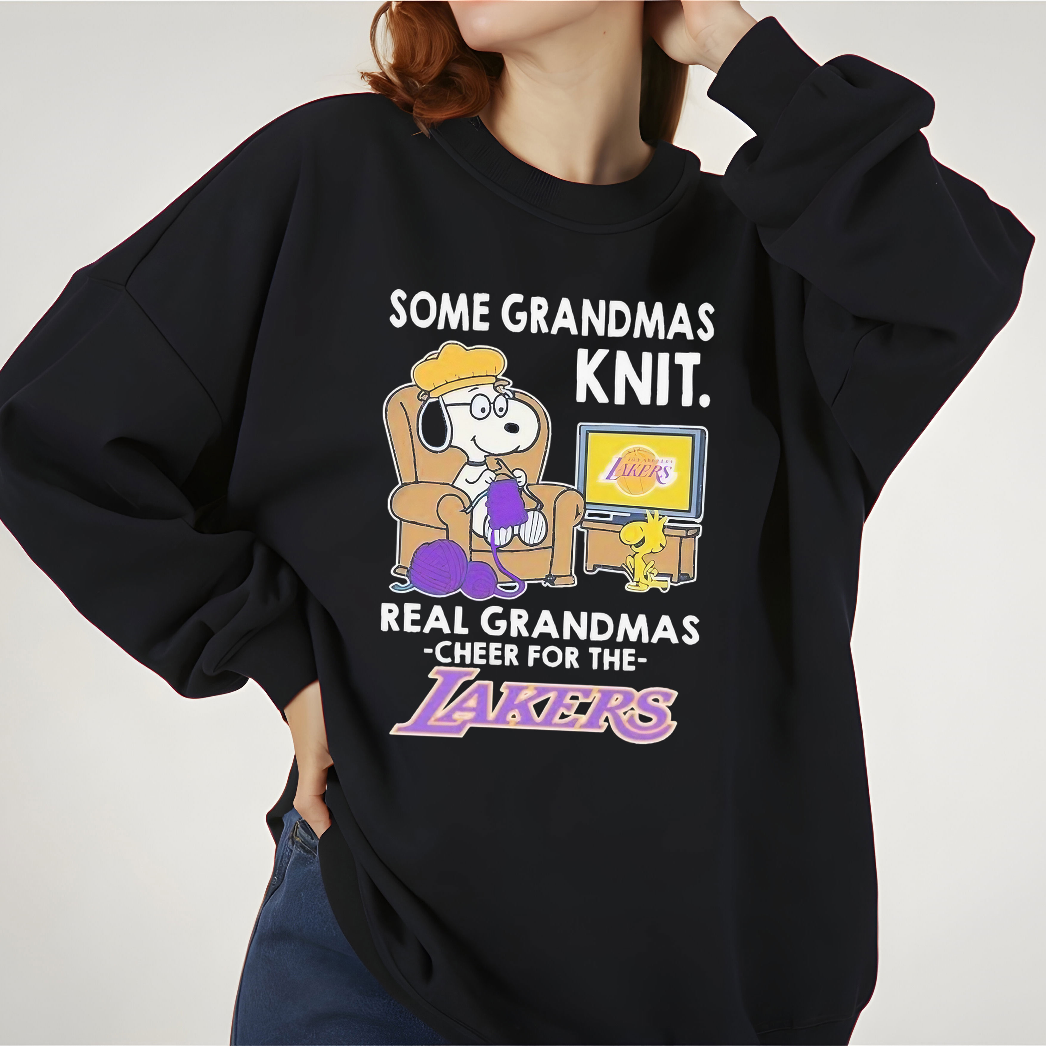 Snoopy and Woodstock The Peanuts Some Grandmas Knit Real Grandmas Cheer for the Los Angeles Lakers Basketball Vintage Bootleg Grandma Fan Apparel – T-Shirt, Hoodie & Sweatshirt