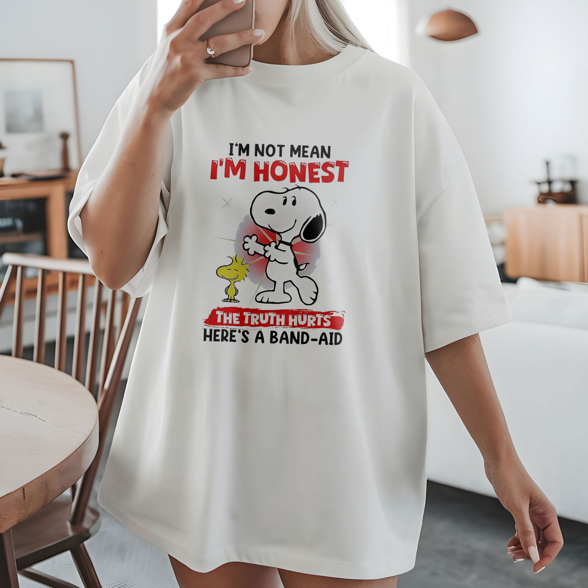 Snoopy I’m Not Mean I’m Honest The Truth Hurts Here’s a Band-Aid Funny Sarcastic Quote Cartoon Graphic T-Shirt, Hoodie & Sweatshirt