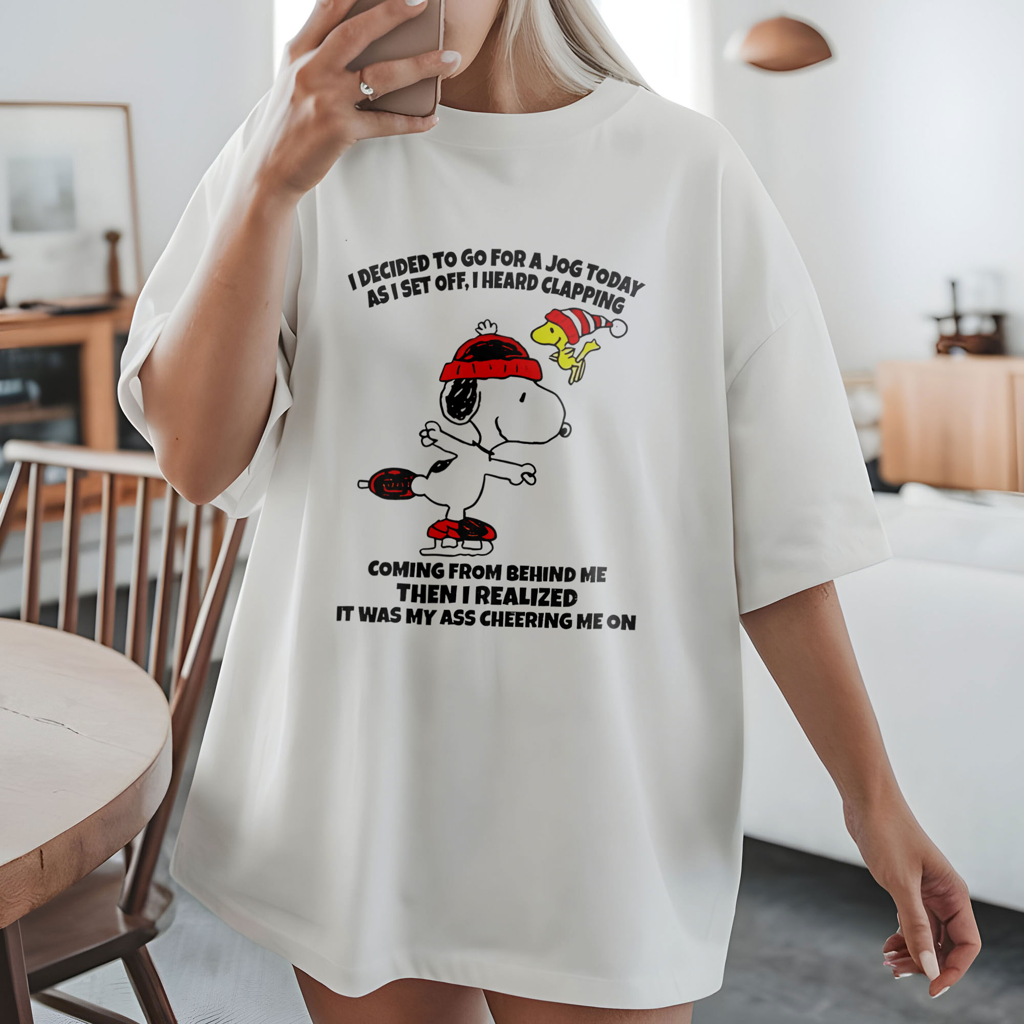 Snoopy I Decided to Go for a Jog Today Heard Clapping Behind Me It Was My Ass Cheering Me On Funny Fitness Quote T-Shirt, Hoodie & Sweatshirt