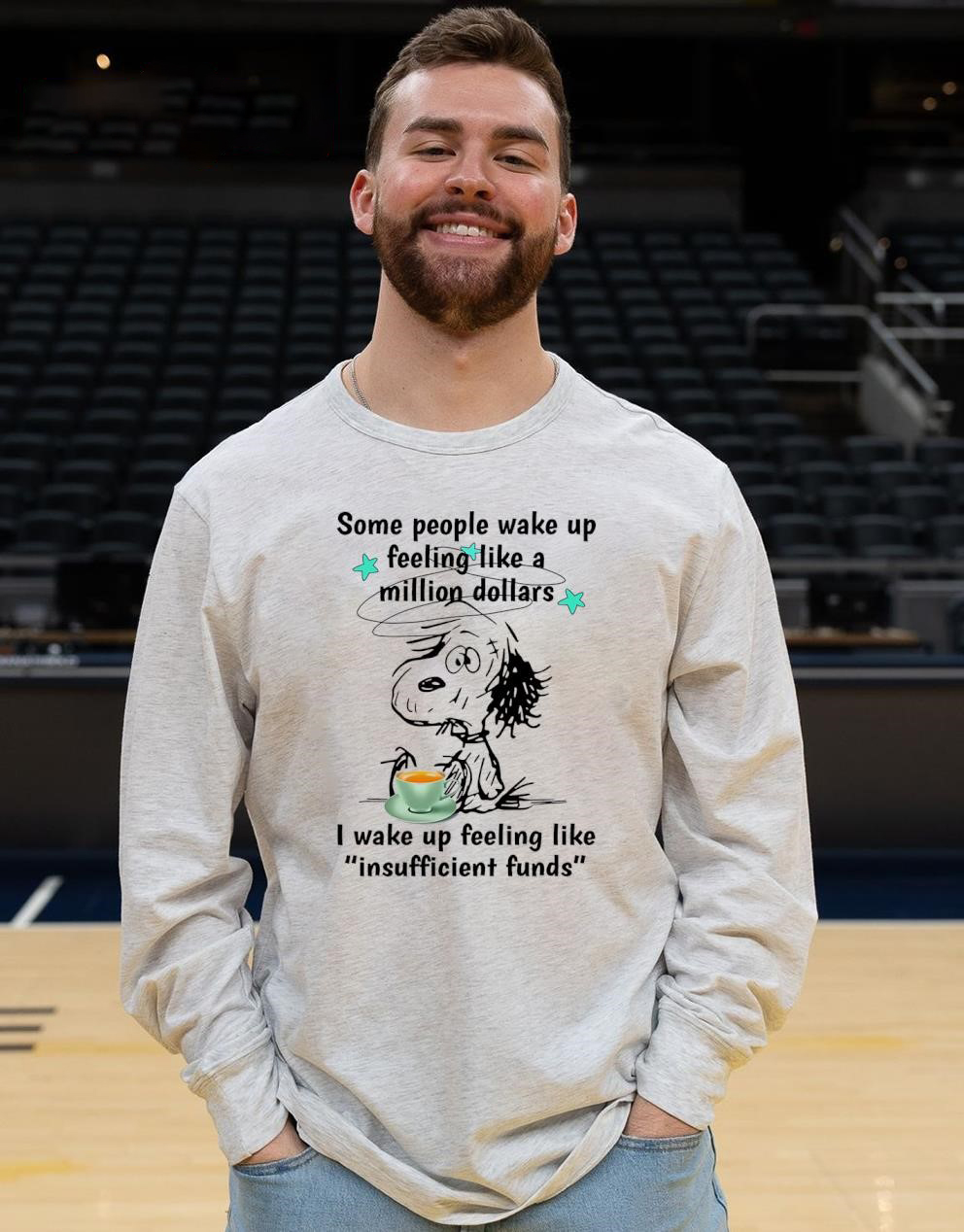 Peanuts Snoopy Some People Wake Up Feeling Like a Million Dollars I Wake Up Feeling Like Insufficient Funds Vintage Bootleg Humor Apparel – T-Shirt, Hoodie & Sweatshirt