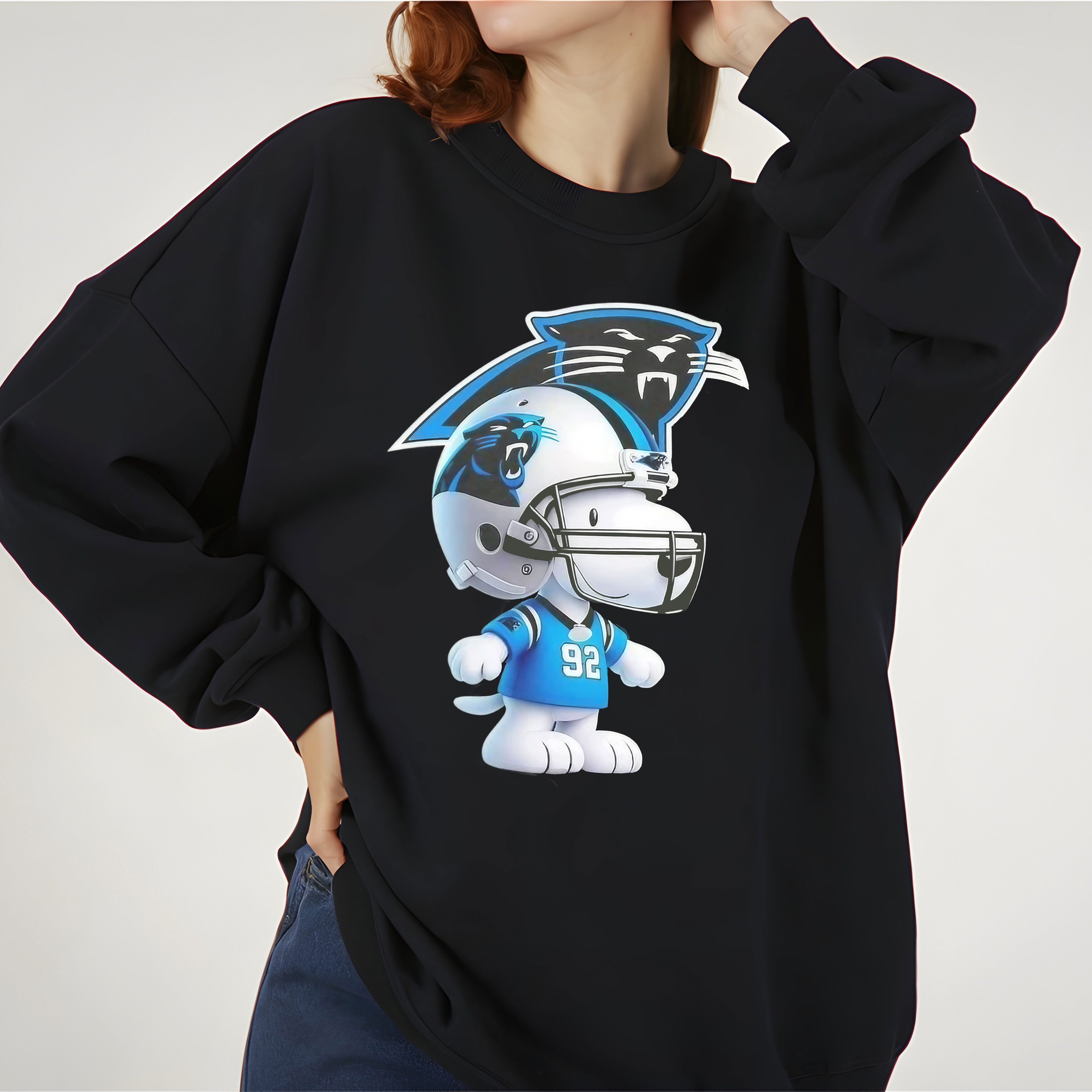 Peanuts Snoopy Smiling at Carolina Panthers Football Fans NFL Team Spirit Vintage Bootleg Blue Pride Apparel – T-Shirt, Hoodie & Sweatshirt