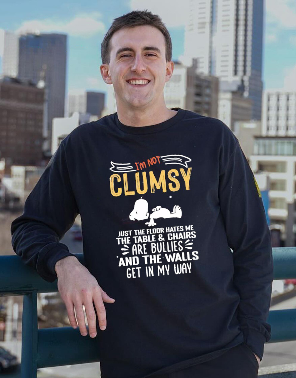 Peanuts Snoopy T-Shirt – Funny I’m Not Clumsy Just The Floor Hates Me, The Table And Chairs Too Vintage Bootleg Humor Tee