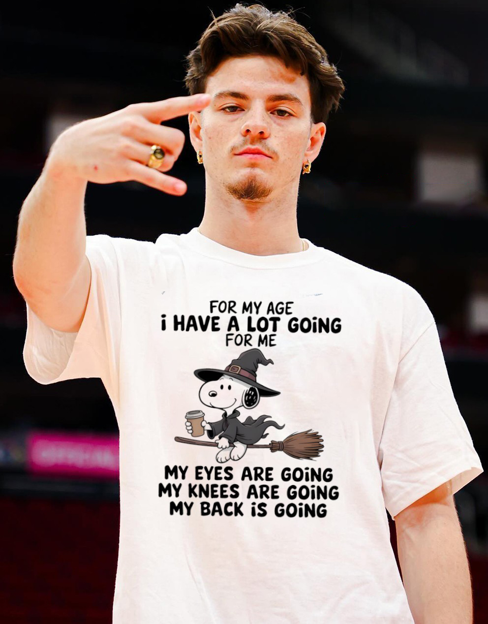Peanuts Snoopy T-Shirt – Funny For My Age I Have A Lot Going For Me My Eyes My Knees My Back Are Going Vintage Bootleg Humor Tee