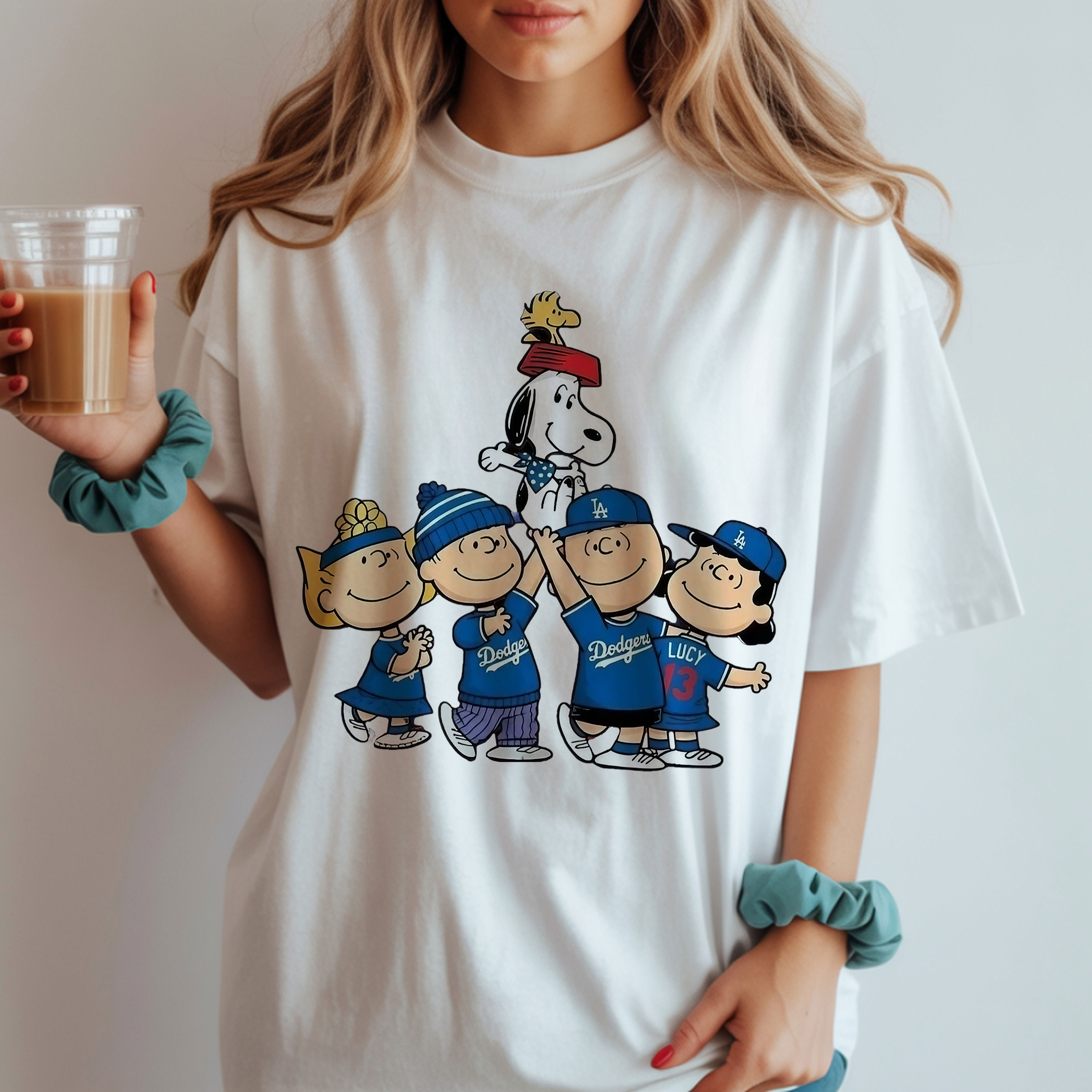 Snoopy & Friends The Peanuts x Dodgers Fan Art Celebrate in LA Baseball MLB Crossover Vintage Bootleg Sports Apparel – T-Shirt, Hoodie & Sweatshirt