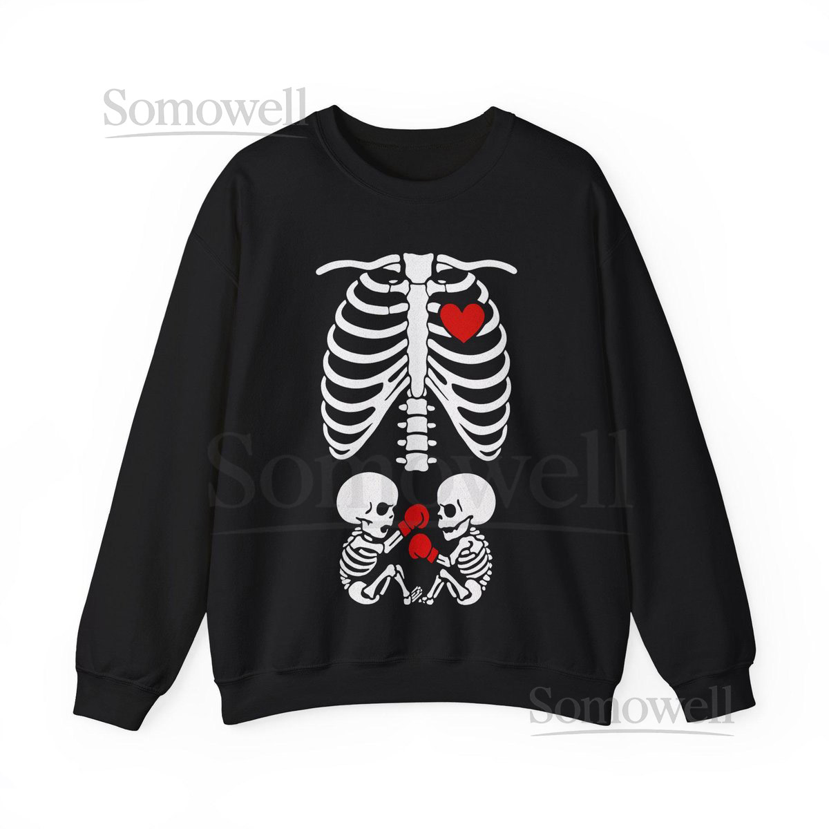 Funny Twin Mom Skeleton Sweatshirt Pregnant with Twins Baby Skeleton Boxing Gloves Gildan Crewneck Pregnancy Announcement Gift for Mom_293