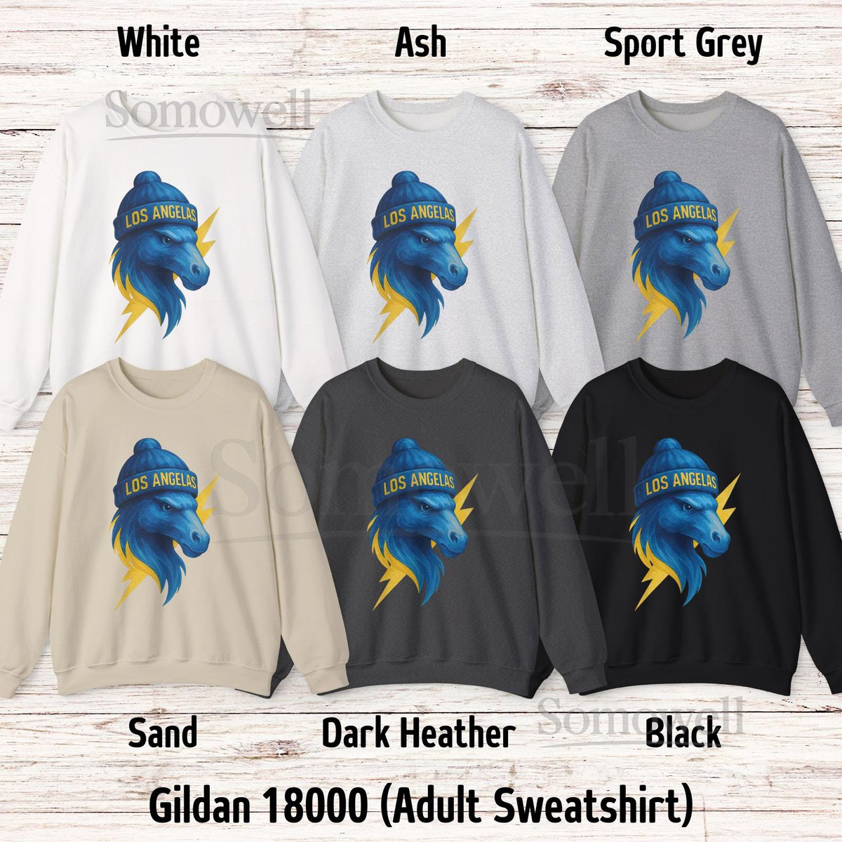 LA Thunder Horse Sweatshirt Watercolor-Style Crewneck Los Angeles-Inspired Soft Vintage Horse Design FamFit32-07_55
