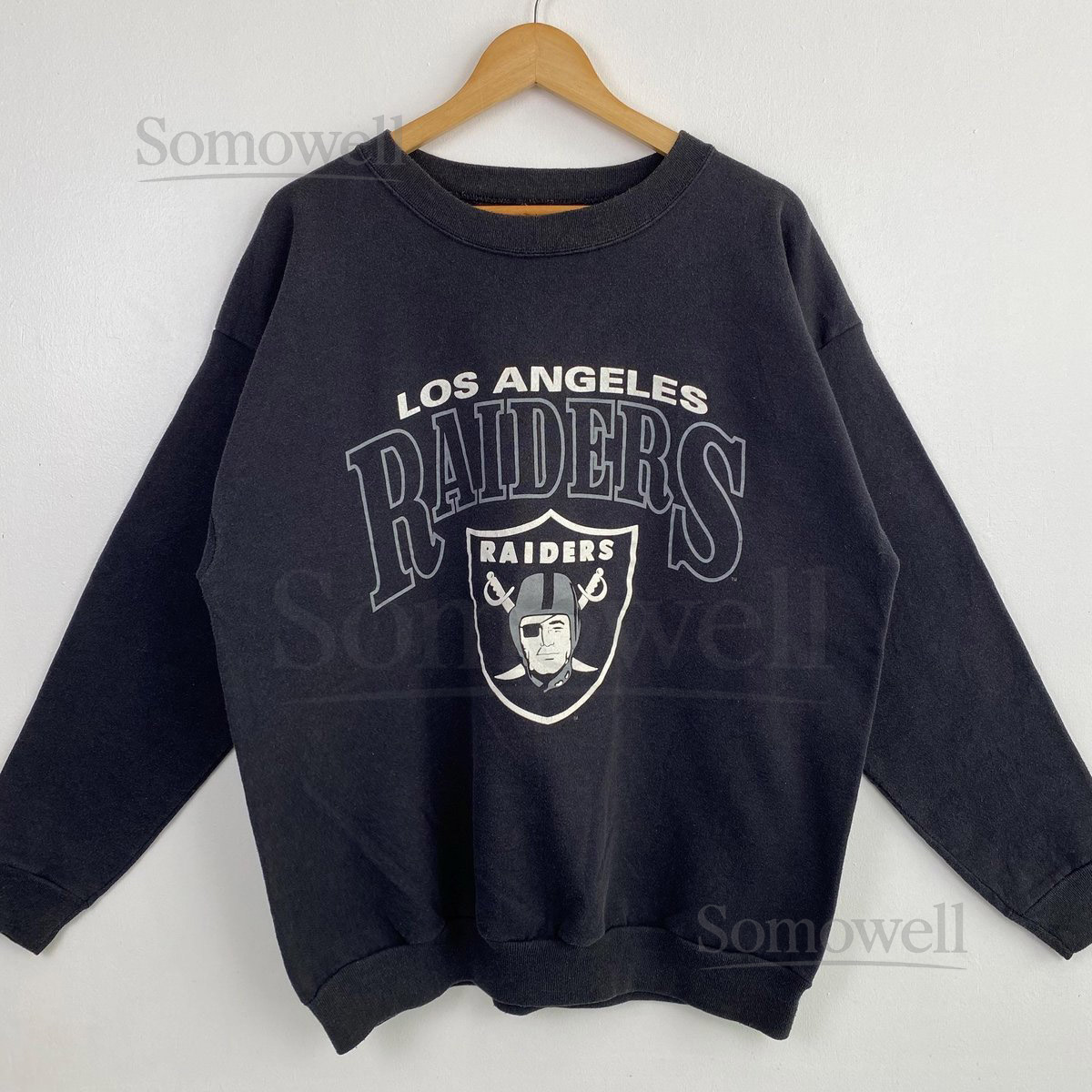 Vintage 90s Las Vegas Raiders Crewneck Sweatshirt – NFL – Print Logo – Black Faded Color – Mens L_121