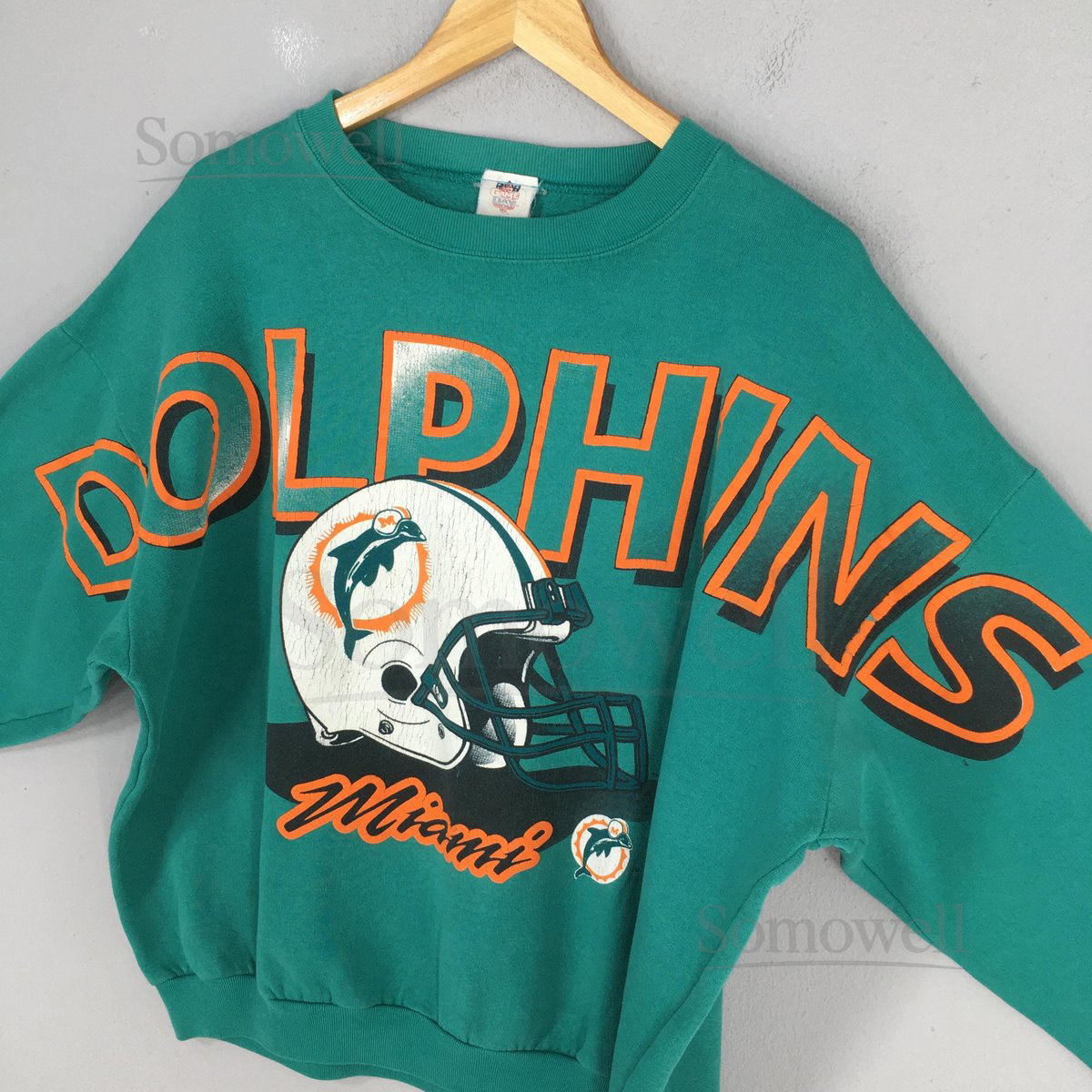 Vintage Miami Dolphins NFL Green Sweatshirt 2XLarge Miami Dolphins Big Printed Spell Out Crewneck Miami Dolphins Jumper Miami Sweater 2XL_696