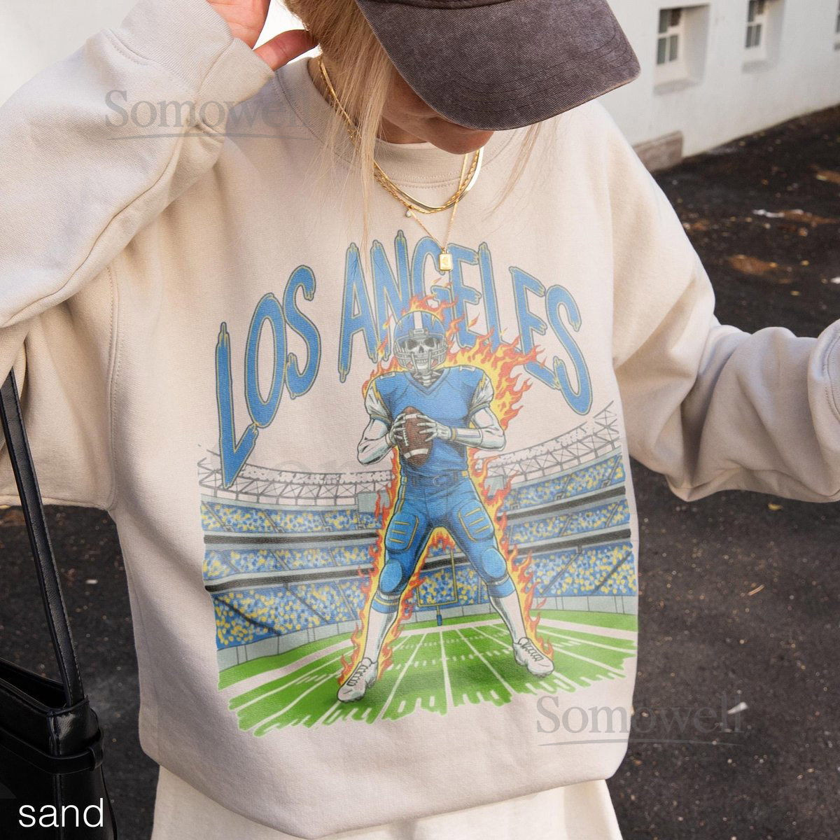 Vintage Los Angeles Football Sweatshirt Retro Cartoon Graphic Pullover 90s Style Sports Fan Sweater Unisex Cozyt Crewneck Football shir_141