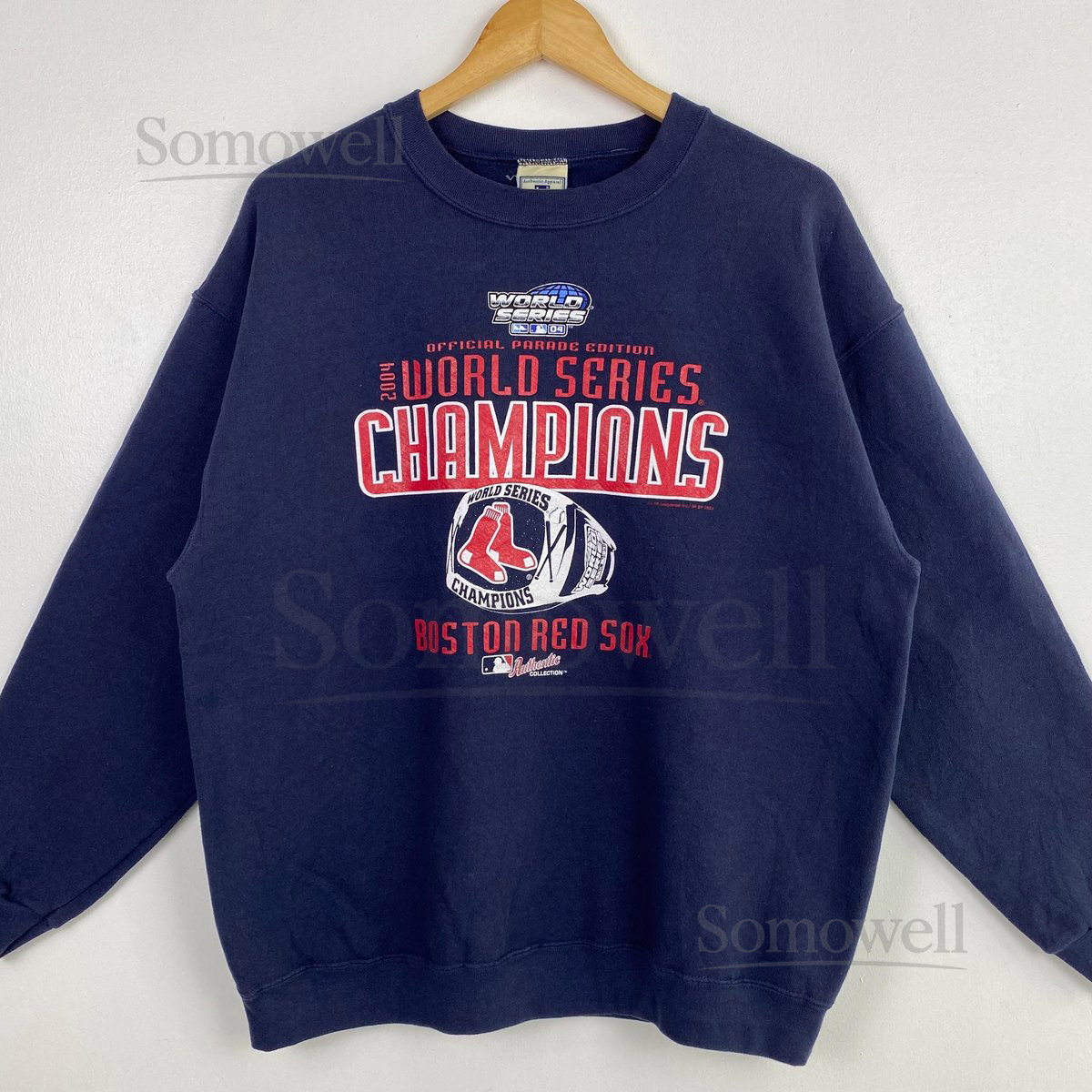 Vintage MLB Boston Red Sox Crewneck Sweatshirt Print Logo Blue Color Mens L_706