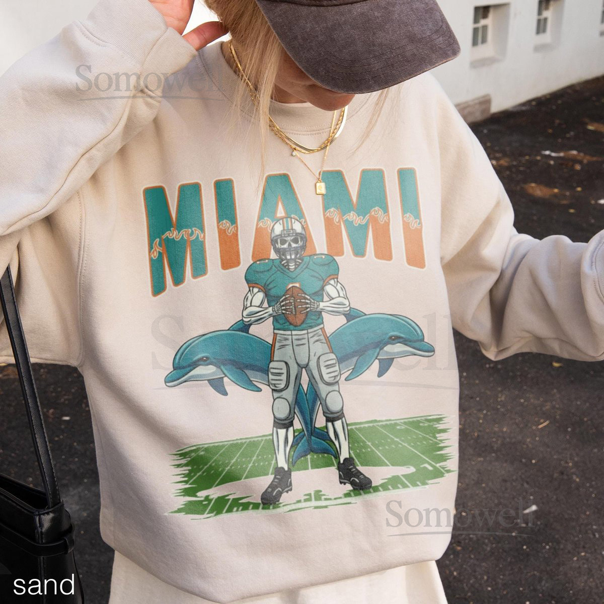 Vintage Miami Football Sweatshirt Retro Dolphins 90s Crewneck Old School Fan Pullover_703