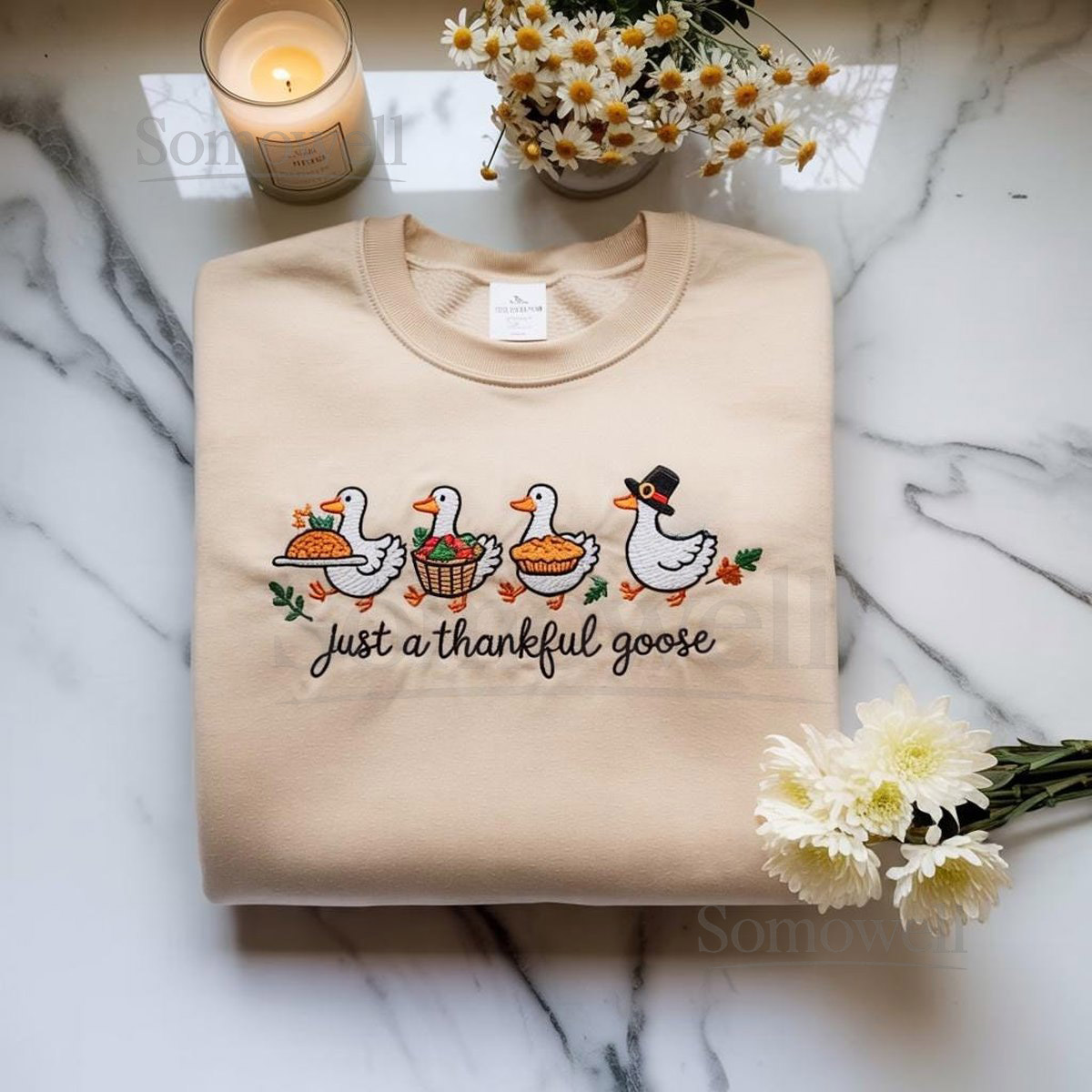 Embroidered Just a Thankful Goose Shirt Thanksgiving Goose Shirt Family Thanksgiving Shirt Fall Vibes Shirt Fall Vibes Gift Shirt_76
