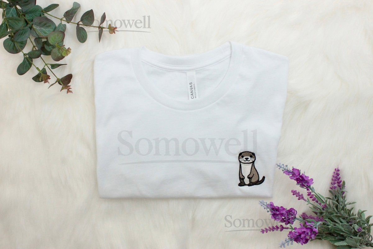 Otter Embroidered T-Shirt Embroidered Crewneck Unisex Shirt Short Sleeve Shirt – Multiple Colors_152
