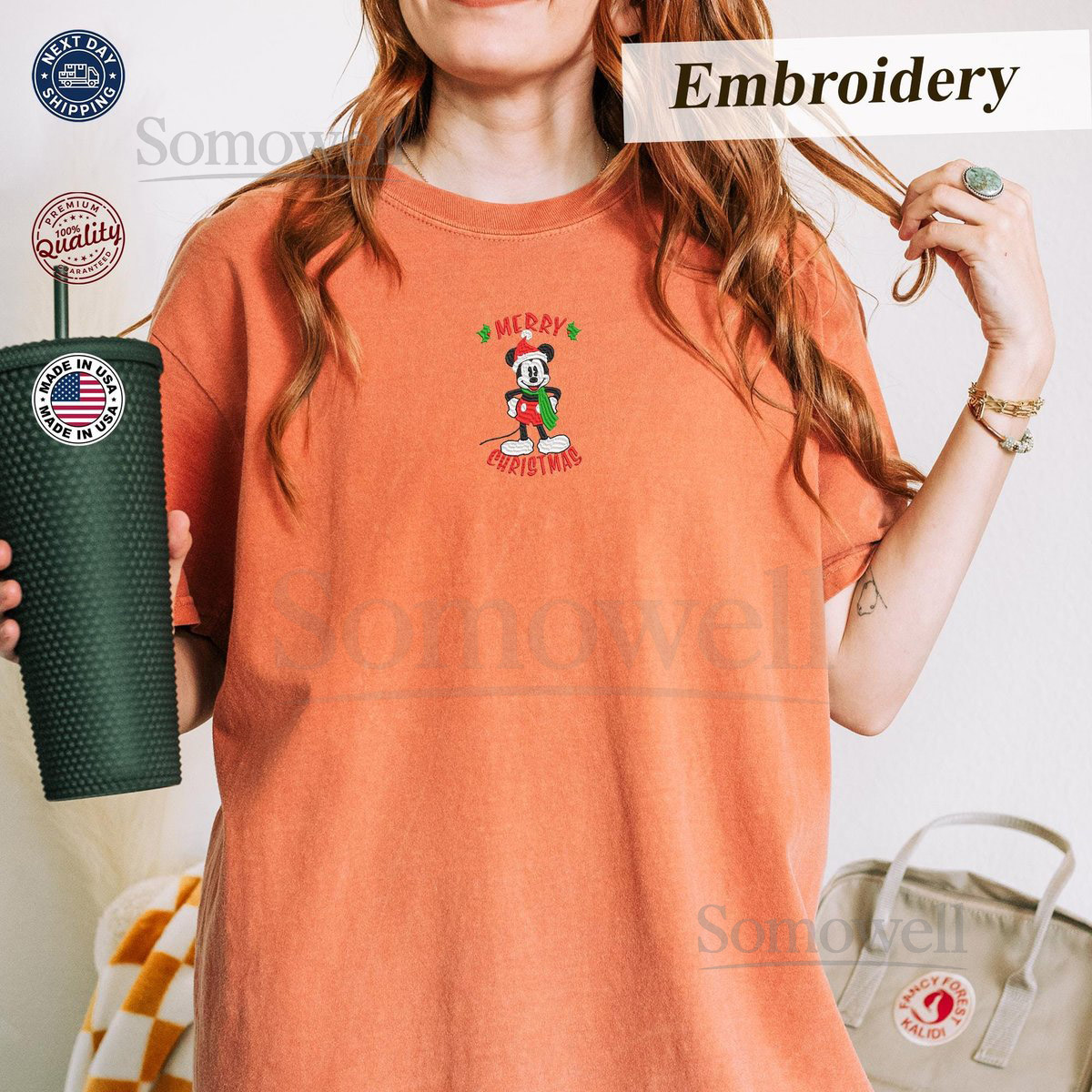 Mickey Merry Christmas Comfort Colors Tee Embroidered Shirt Christmas Shirt Gift For Her Christmas Gift Mickey Shirt Embroidered Gift_144