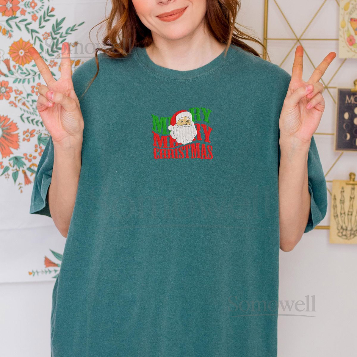 Merry Merry Christmas Shirt Comfort Colors Shirt Christmas Gifts Holiday Shirt Embroidered Shirt Santa Shirt Santa Claus Tee_142