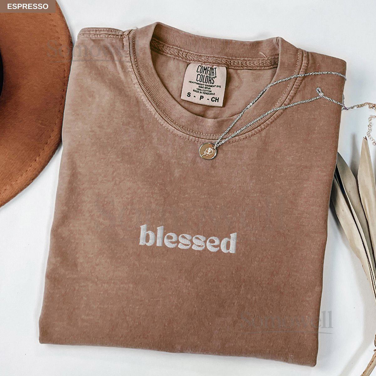 Embroidered Christianity Shirt Blessed Tee Comfort Color Christian T-Shirt Minimalistic Subtle Christian Gift Godly Blessings Shirt_58