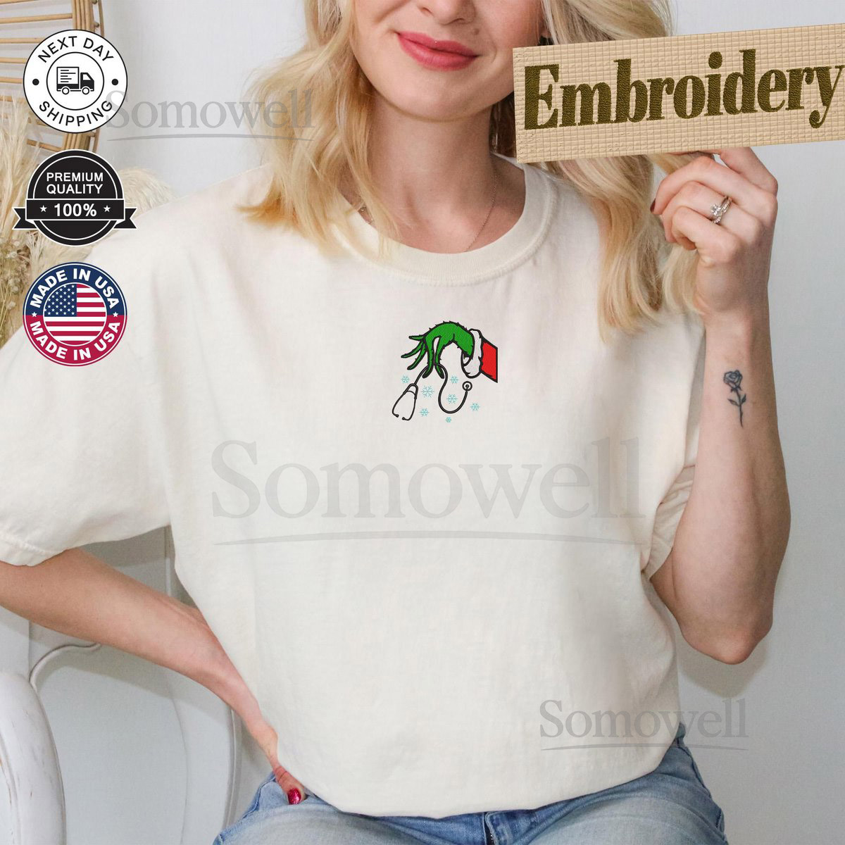 Embroidered Comfort Colors Green Christmas T-Shirt Nurse Tee Funny Christmas Nursing Shirt Healthcare Christmas Shirt Gift For Nurse_59