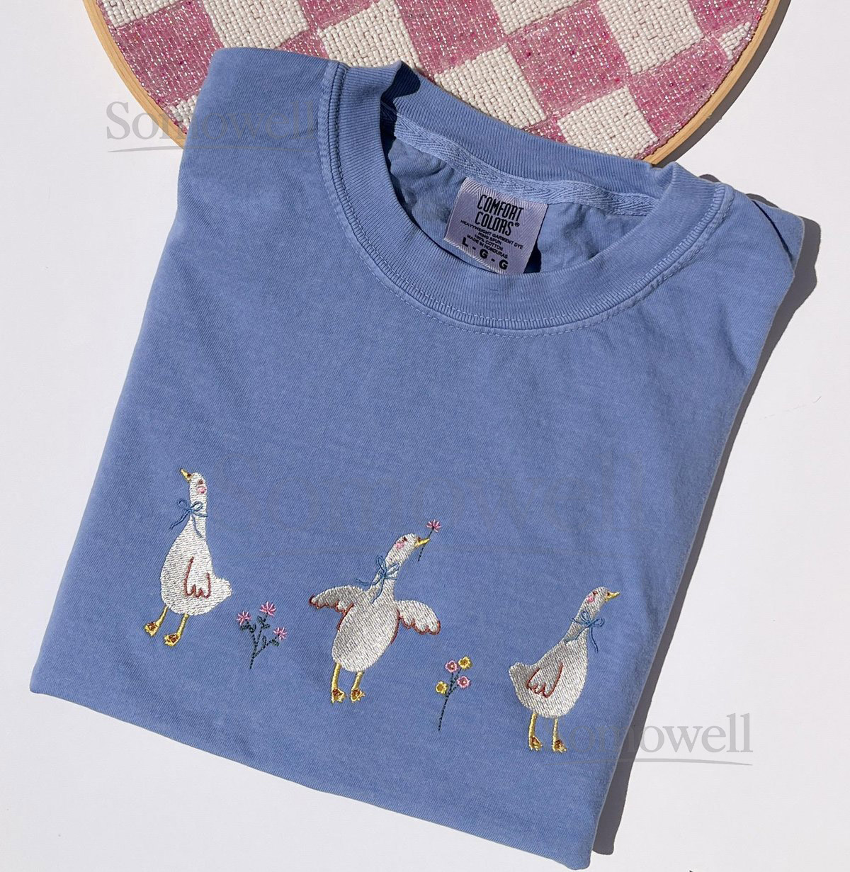 Goose Embroidered Tee Embroidered Duck Shirt Embroidered Goose Shirt Ducks Flowers Tee Embroidered Geese Flowers T-Shirt_120