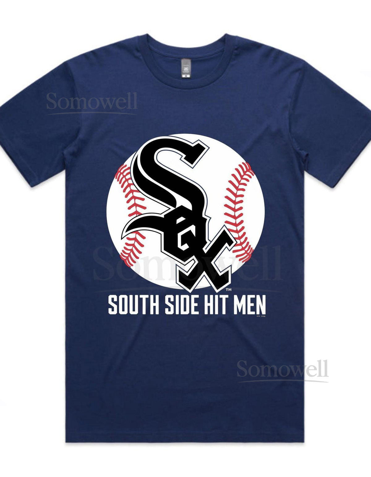 White Sox South Side Hitmen baseball Chicago MLB sports team logo Sox black and white baseball stitches fan gear apparel_603
