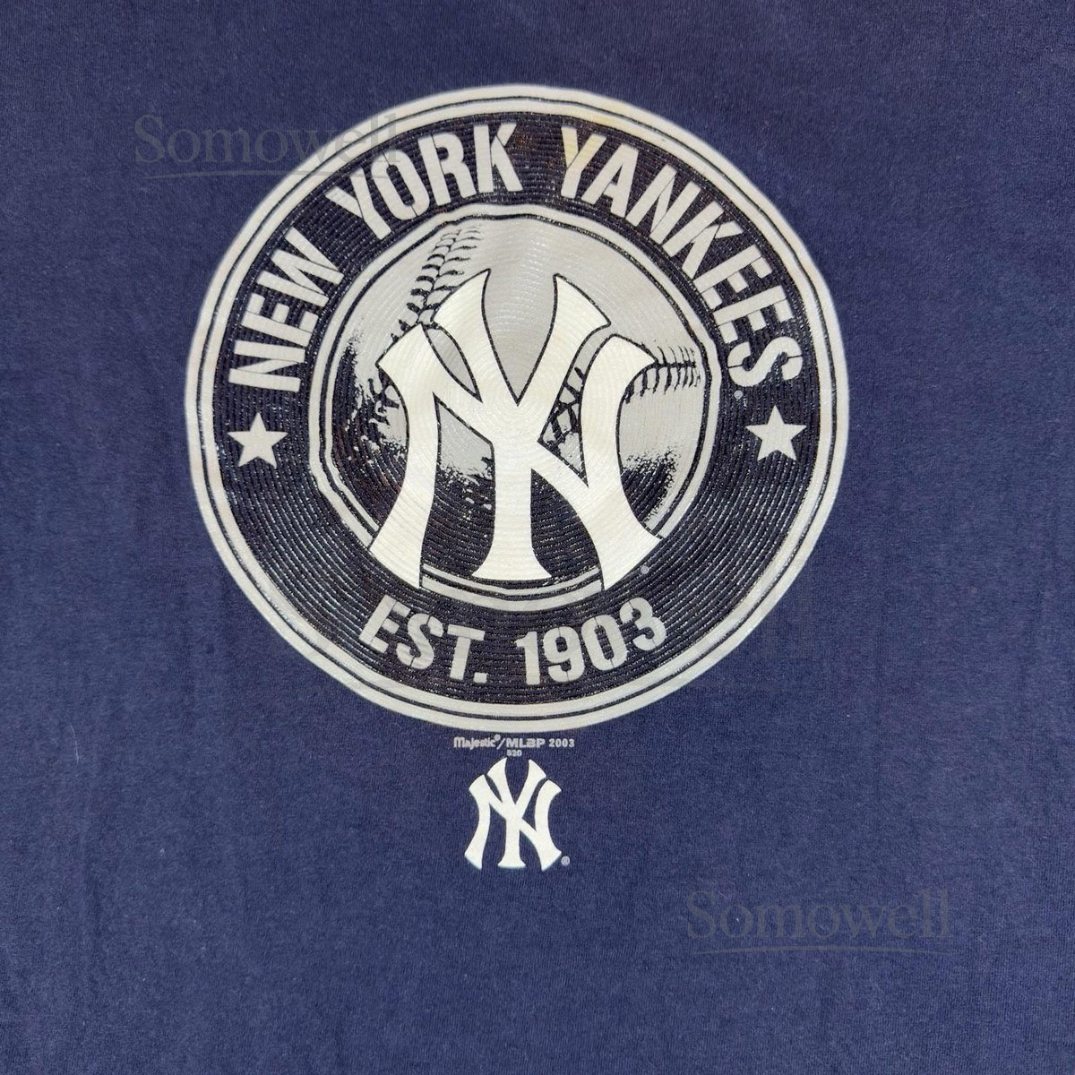 Vintage New York Yankees Shirt Mens XL Blue White MLB Baseball 2003 Logo Y2K Tee_509