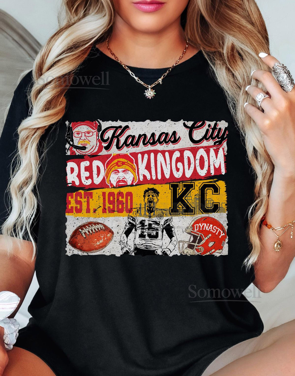 Red Kingdom Kansas City Chiefs Shirt Dynasty Playoffs Shirt Cozy KC Football Shirt with Distressed Print Retro Design Unisex Fit_714