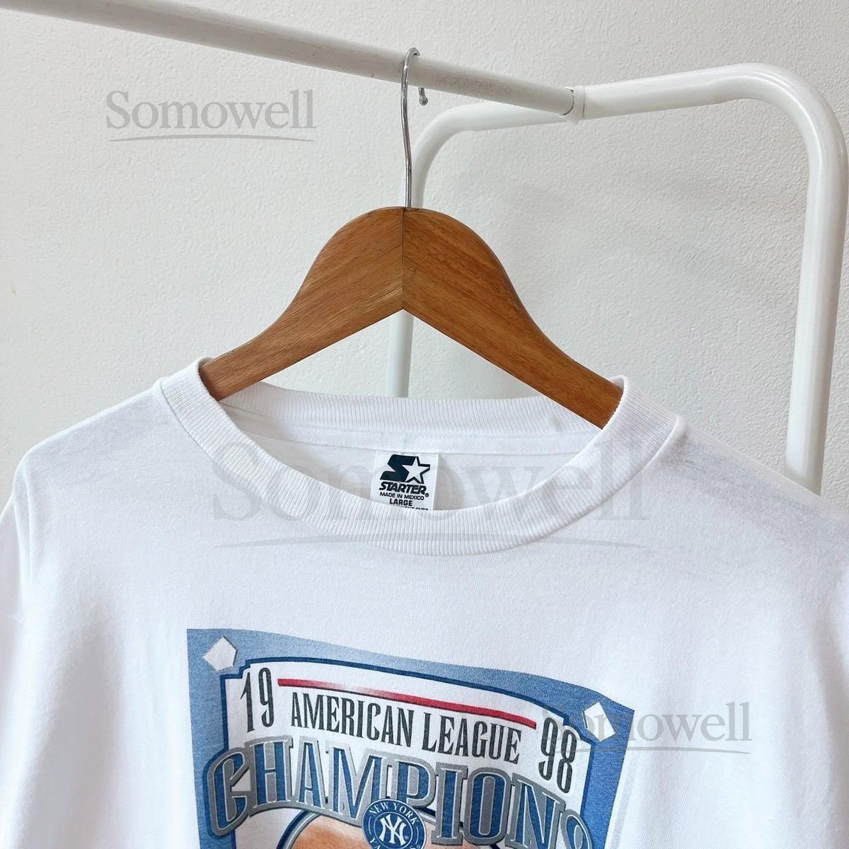 Vintage 90s New York Yankees 1998 MLB baseball Starter white t-shirt L_436