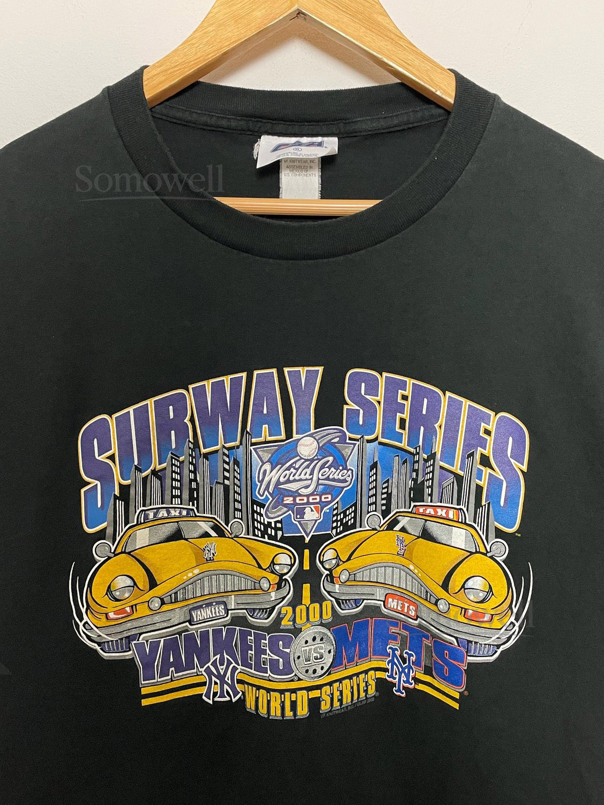 Vintage 2000 Subway Series New York Yankees vs Mets Yellow Taxi Cab Skyline Graphic MLB Baseball World Series Tee Shirt size adult XL_405