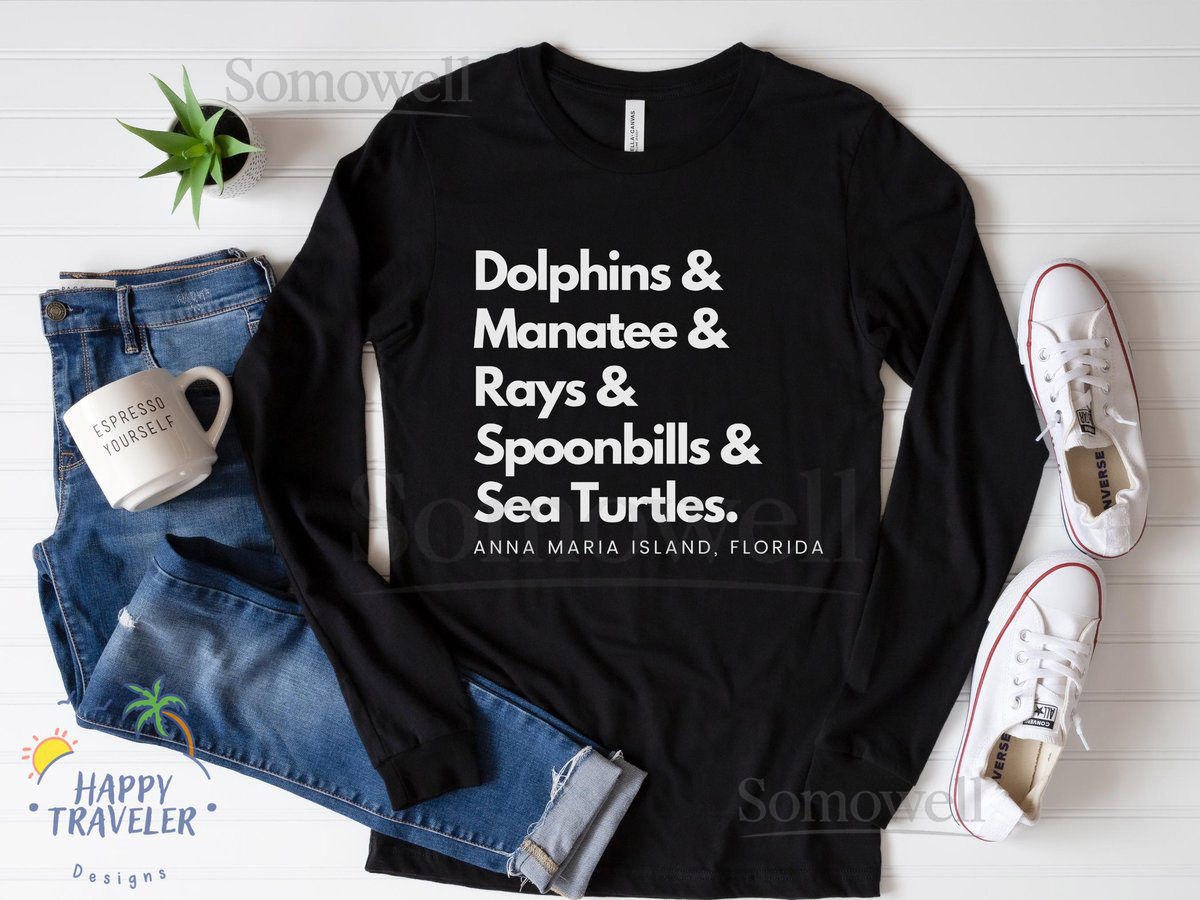 Florida Hurricane Aid Anna Maria Island Long Sleeve Tee – Soft Lightweight Bella Canvas Dolphins Manatee Rays Spoonbills Sea Turtles_447