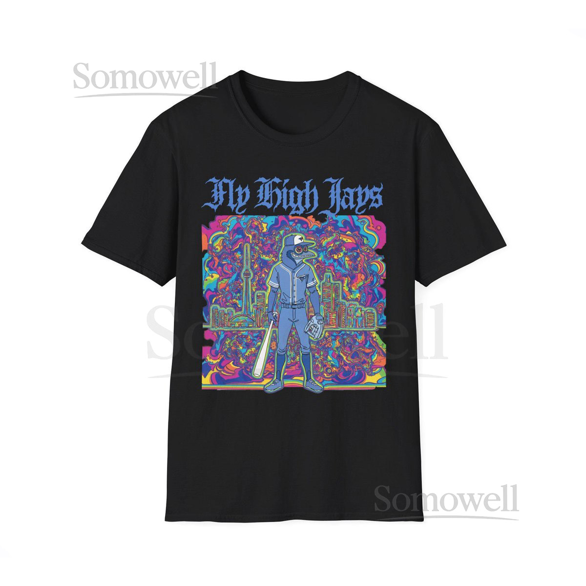 Psychedelic Blue Jays Unisex Softstyle T-Shirt Fly High Toronto Baseball_79