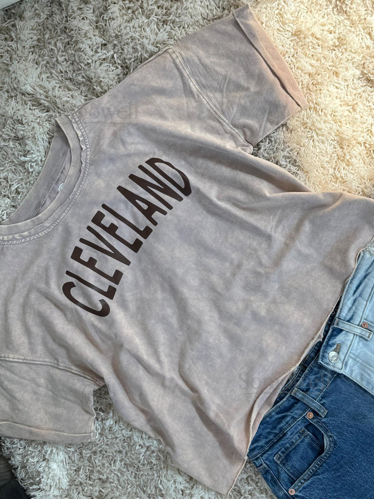 Oversized Cleveland crop tee Vintage wash Browns tee Cleveland Browns crop top Browns football sweatshirt Cavs shirt Guardians tee_63