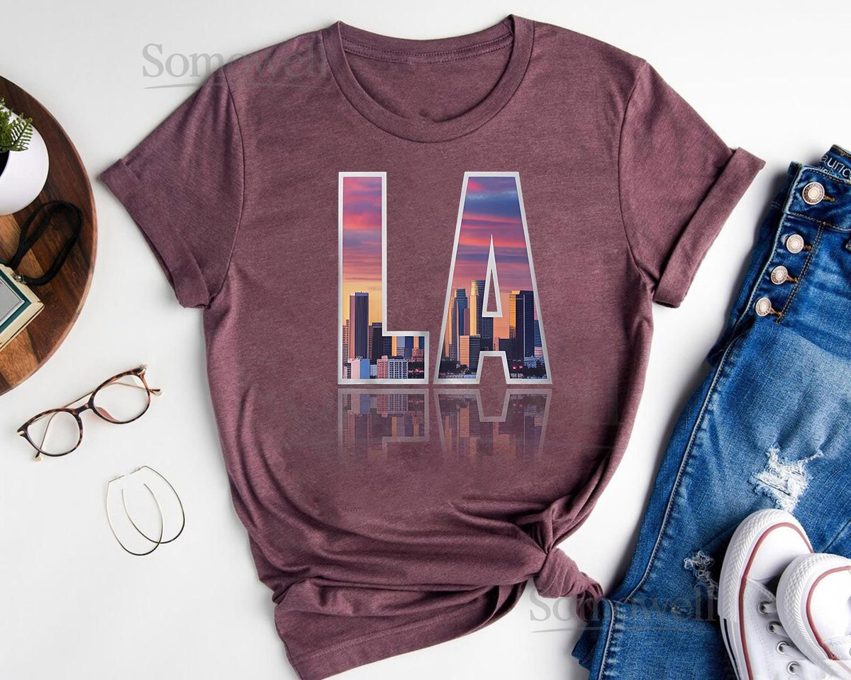 LA City Skyline T-Shirt Los Angeles Sunset Graphic Tee_244