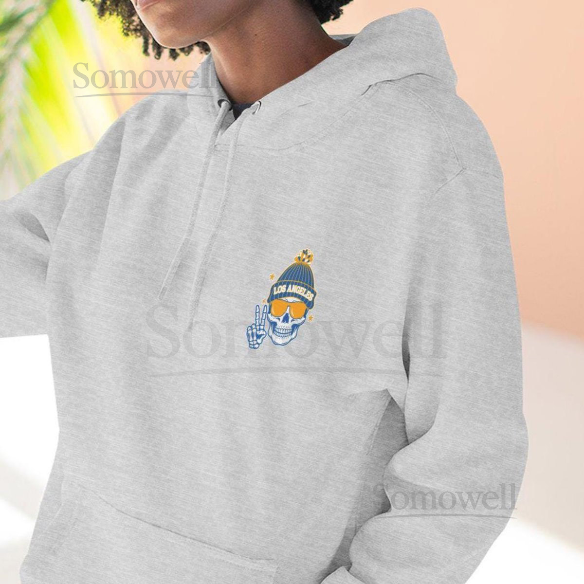 Los Angeles Hoodie Trendy Football Fan Gift Skeleton With Beanie Hat Graphic Hoodie_571