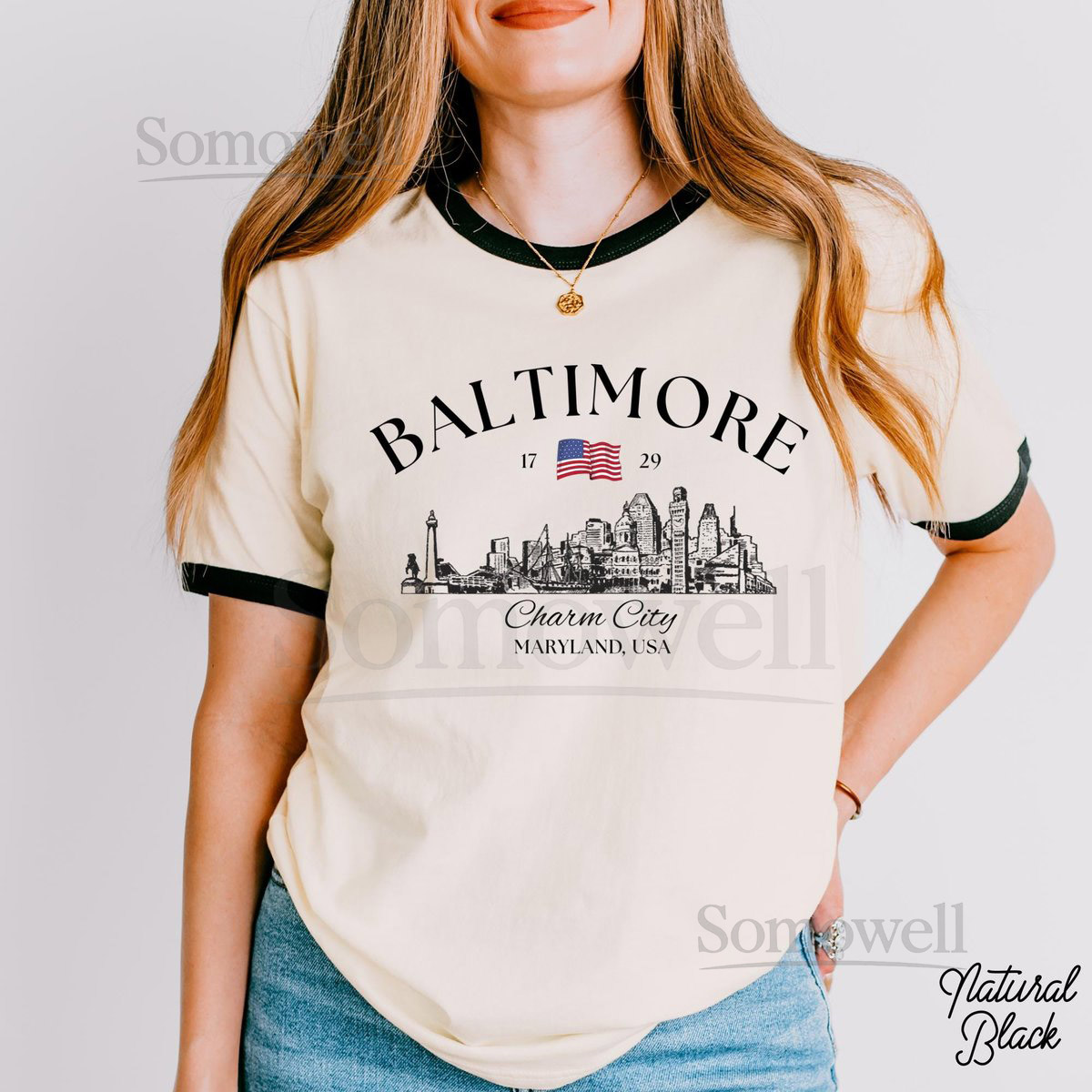 Baltimore Maryland Crewneck Shirt Baltimore Skyline Sketch Unisex Shirt Retro and Unique Baltimore City Souvenir for Travel Lovers_80