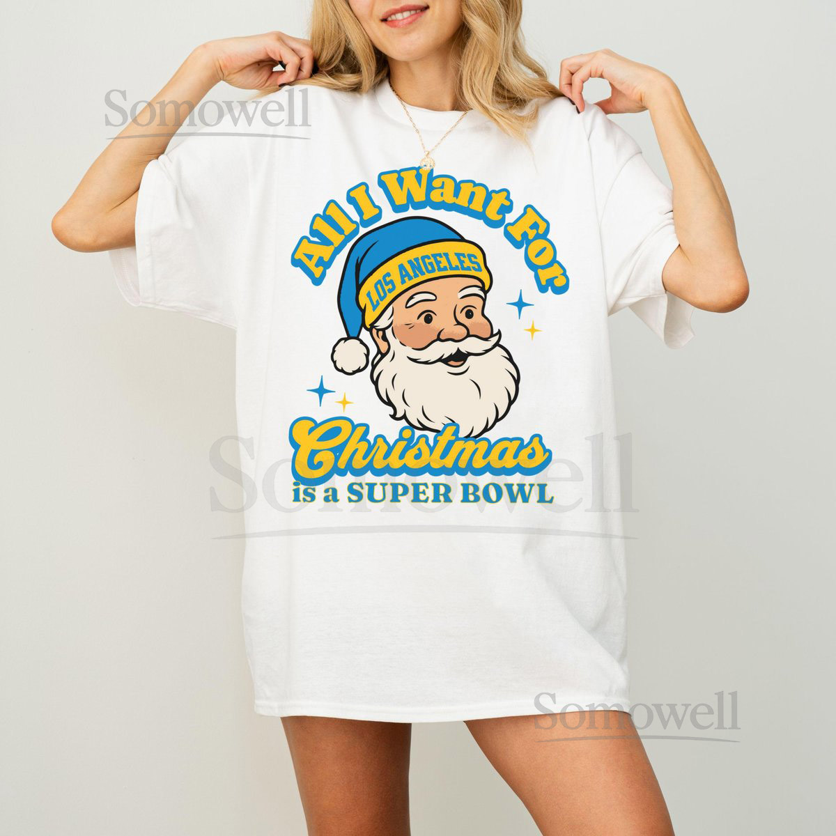 Los Angeles Football Christmas Super Bowl T-Shirt Retro Charger Football Tee Holiday Football Fan Shirt Festive Sports Apparel Santa Tee_537