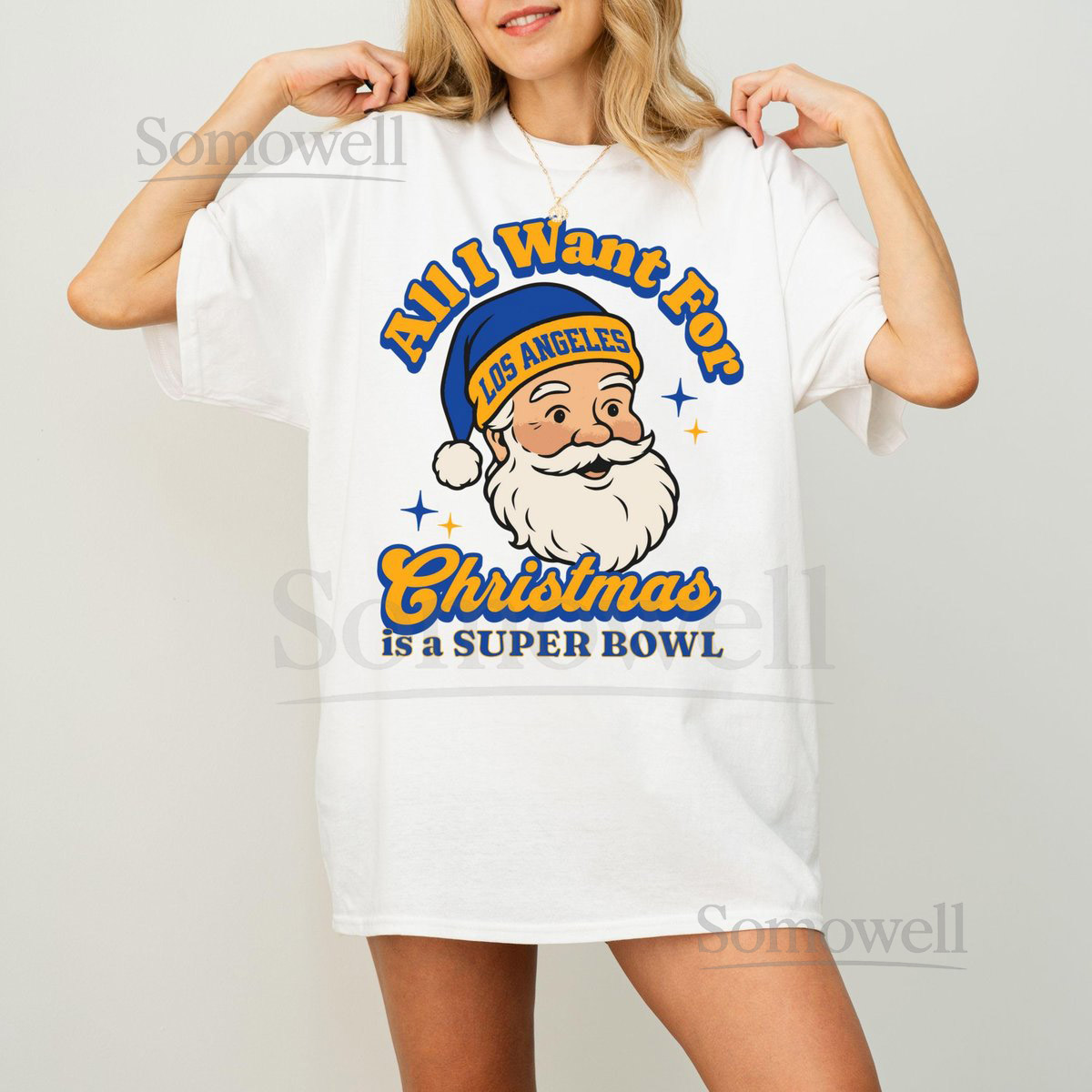 Los Angeles Football Christmas Super Bowl T-Shirt Retro Ram Football Tee Holiday Football Fan Shirt Festive Sports Apparel Santa Shirt_538