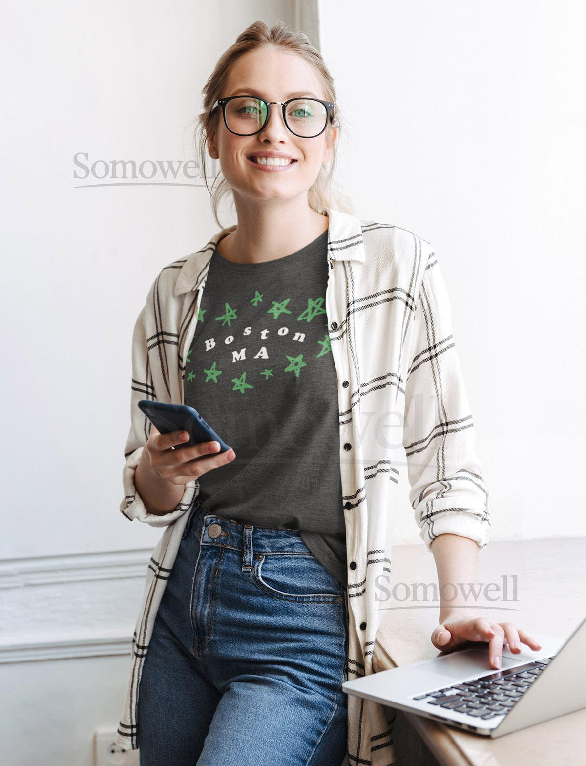 Whimsical BOSTON T-Shirt w. Stars Unisex BOS Massachusetts shirt fun artistic artsy indie style aesthetic MA housewarming gift him her_729