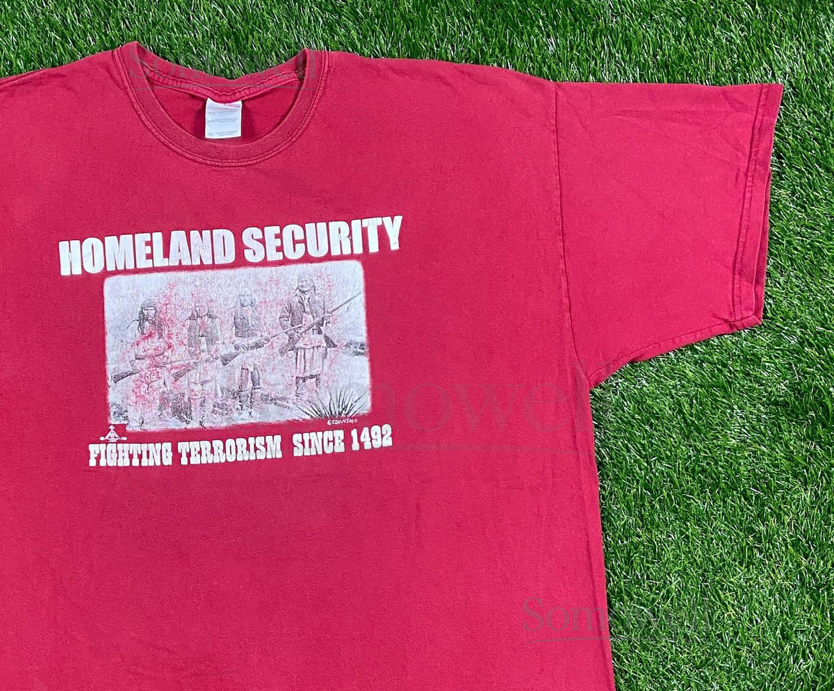 Vintage Homeland Security T Shirt Tee Fighting Terrorism Since 1492 Gildan Size XXL 2XL Native Made The Authentic Original_690