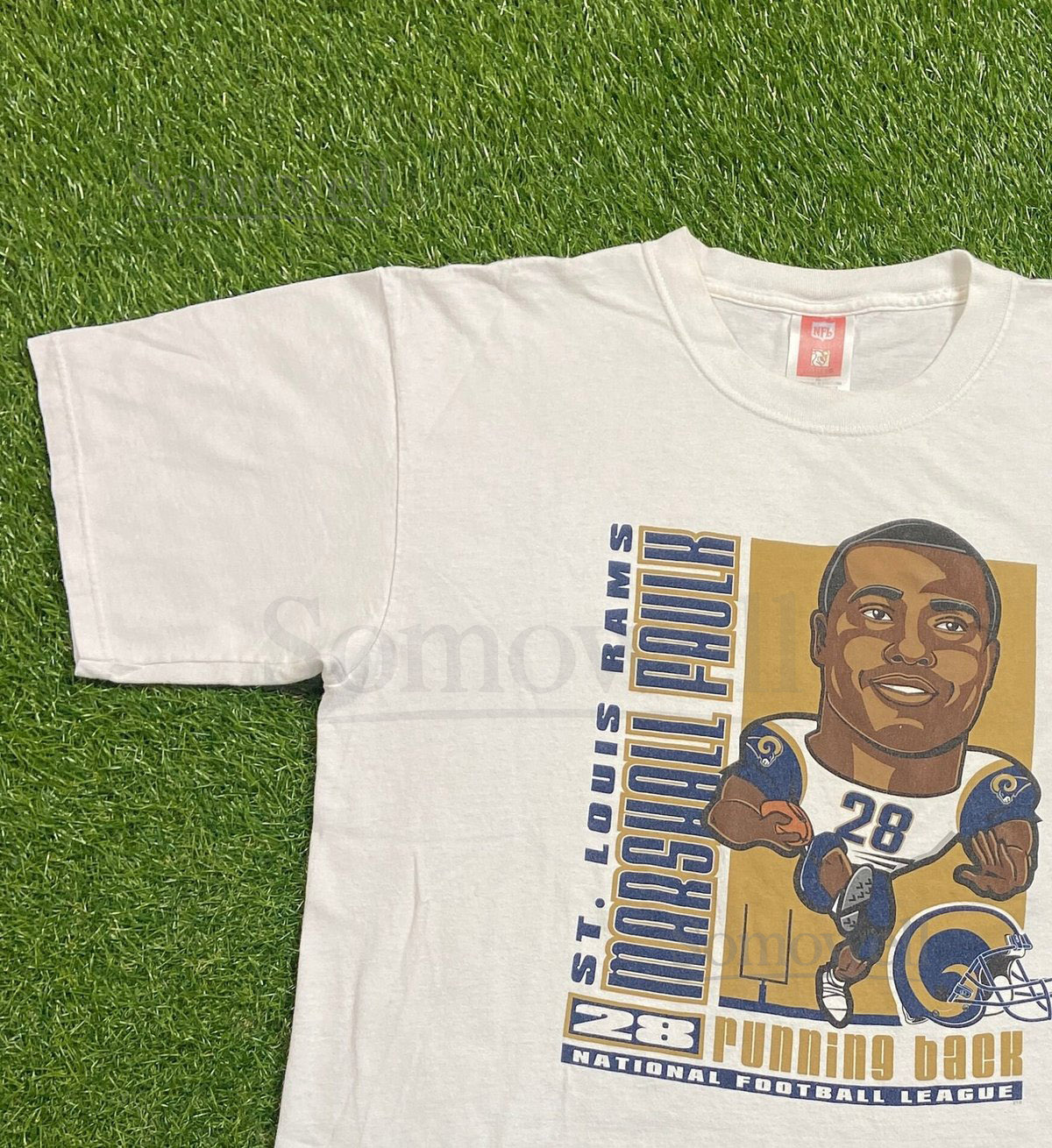 Vintage St Louis Rams Marshall Faulk 28 T Shirt Tee Size Xtra Large XL NFL Super Bowl Football Missouri Los Angeles 00s_832