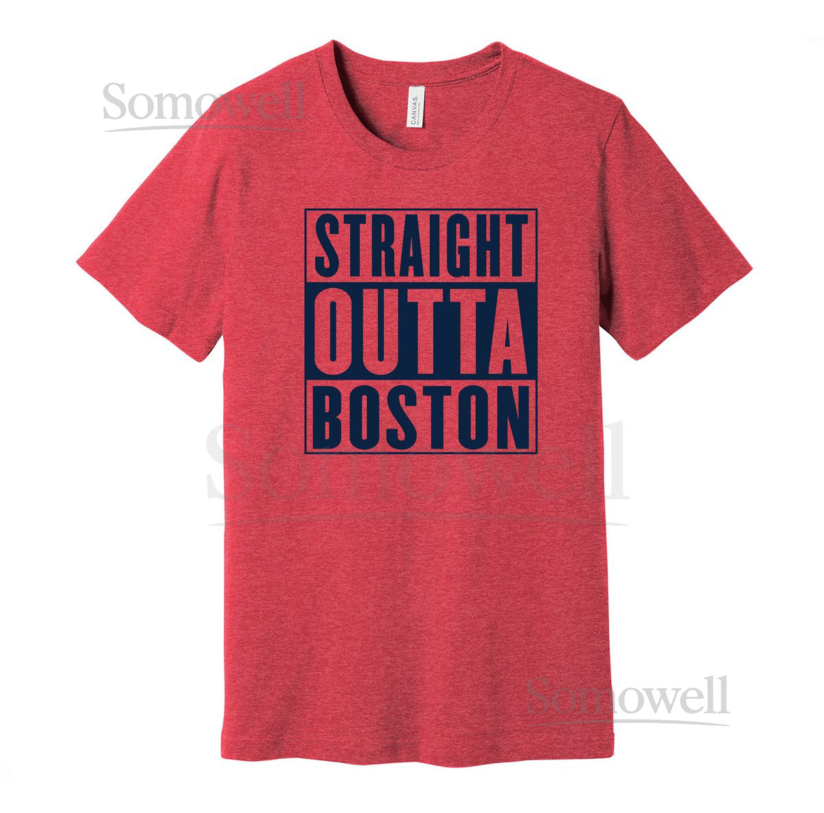 Straight Outta Boston – Hip Hop Parody Shirt – Navy Red T-Shirt Resident Local Love Tee S M L XL XXL 3XL Multiple Color Choices_552