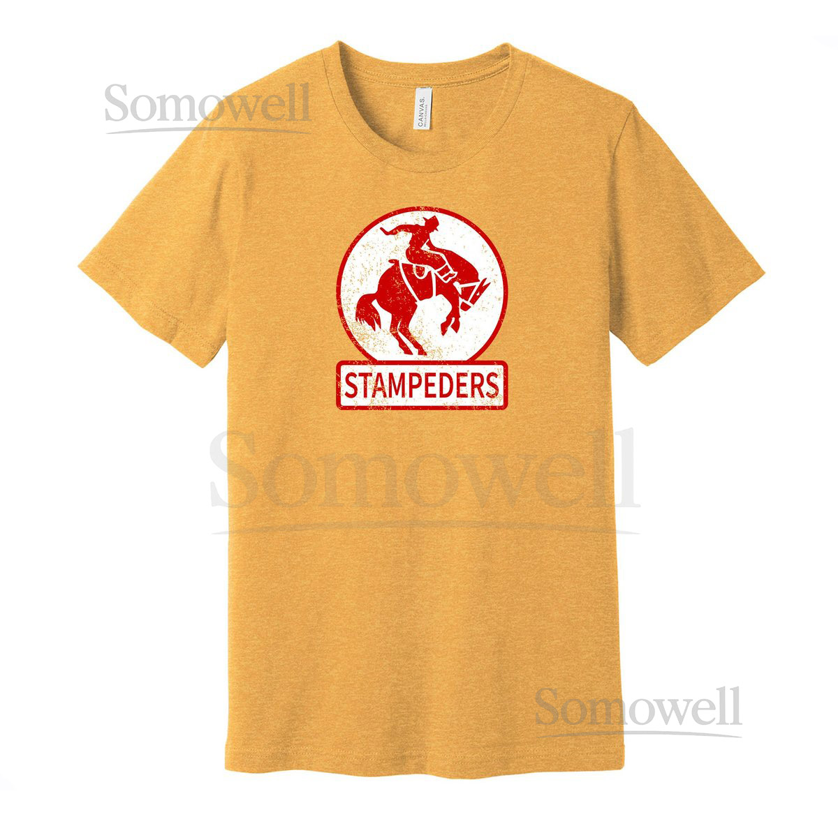 Calgary Stampeders Throwback Tee – Retro Distressed Logo Defunct Hockey Team S M L XL XXL 3XL Red Gold Black White Grey Color Choice_62