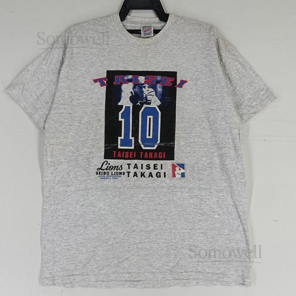 Vintage 90’s Taisei Takagi Seibu Lions Japanese Baseball Team Gray Large T Shirt Baseball League Baseball Champion Shirt Size L_1012