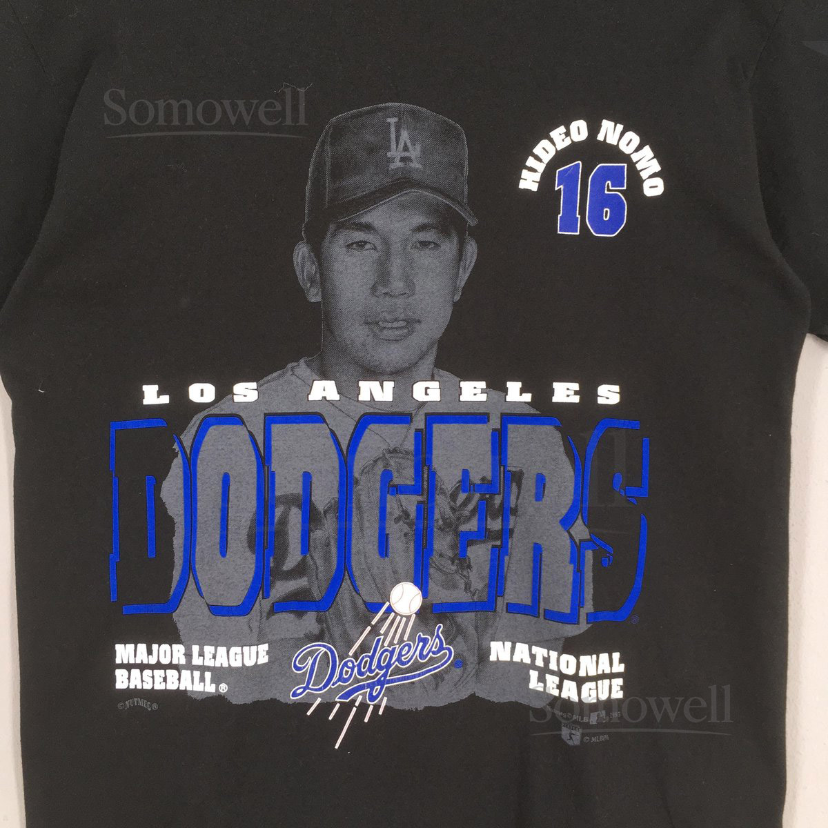 Vintage 90s Los Angeles Dodgers MLB Black T shirt Medium Hideo Nomo LA Dodgers Printed Shirt Baseball Team Sports Dodgers Jersey Tees Size M_1036