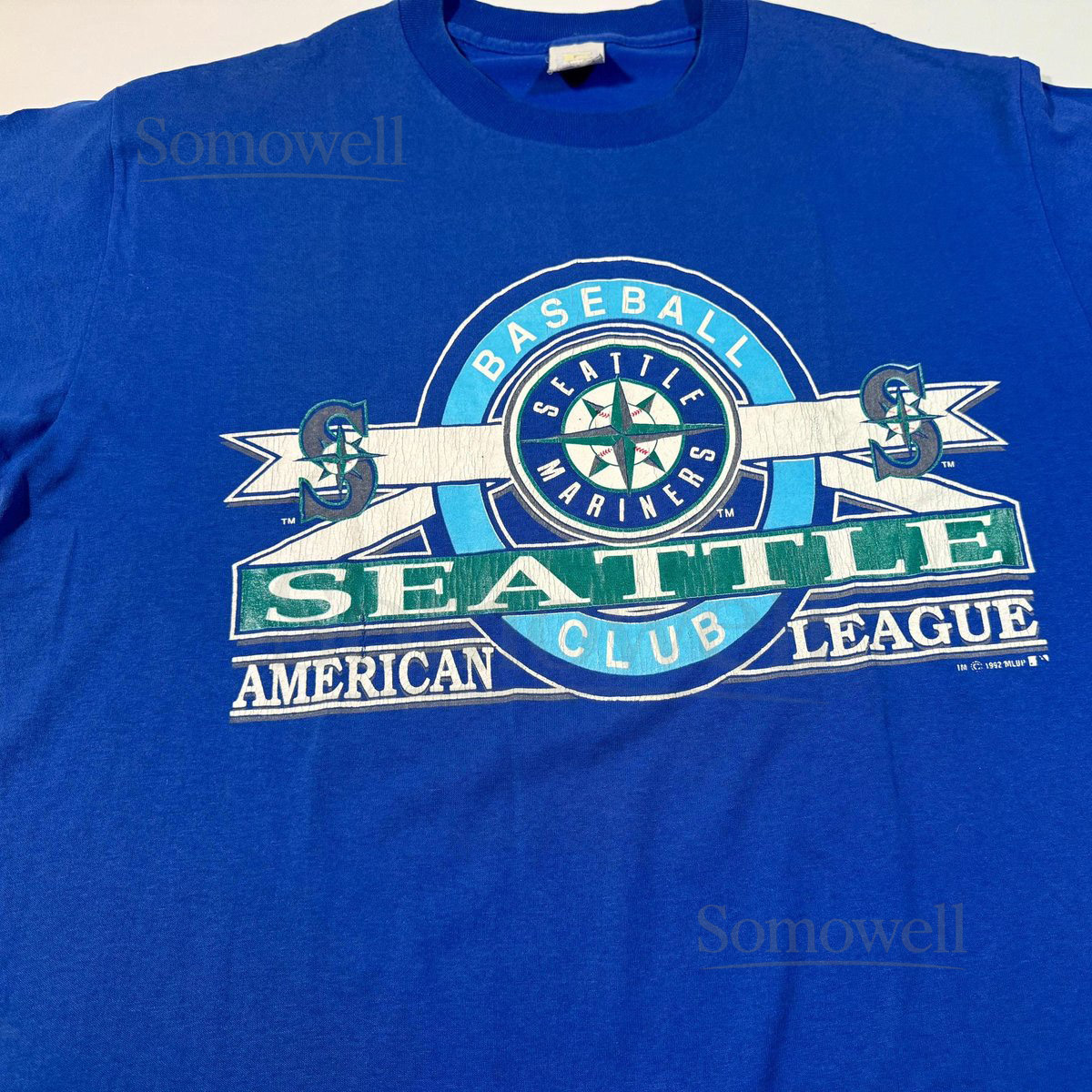 Vintage 1992 Seattle Mariners T-shirt by Competitor Authentic American League Baseball Club Logo Single Stitch Blue Tee XL_978