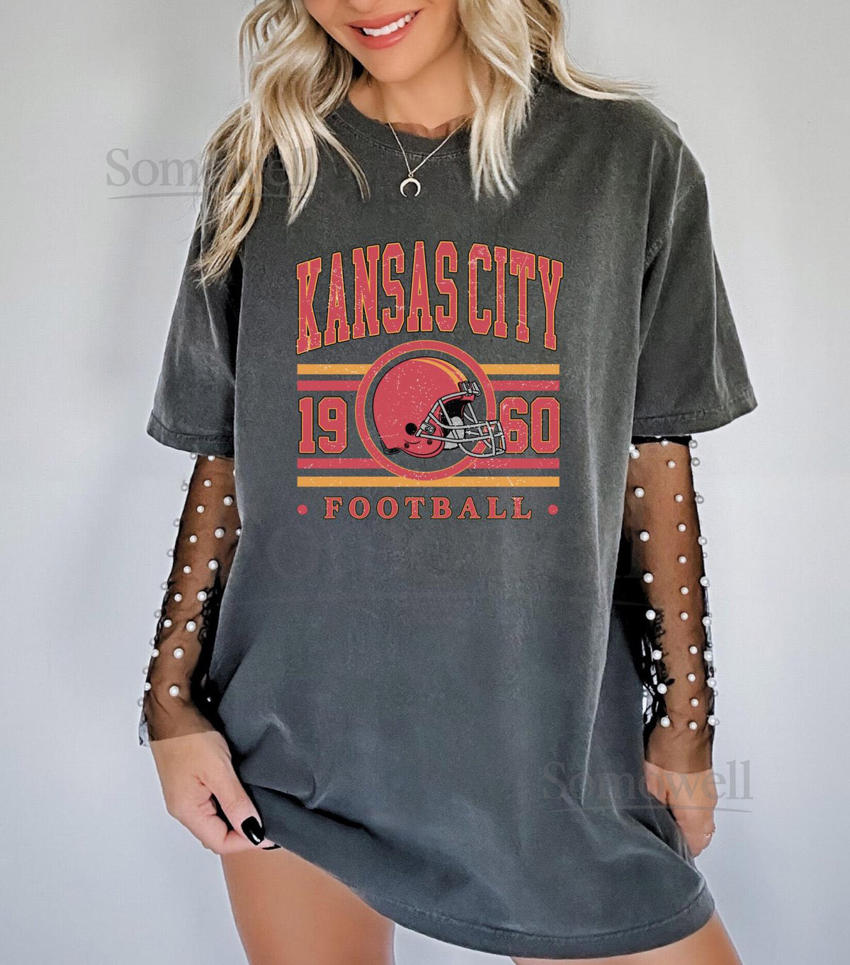 KC Chiefs Shirt Cozy KC Football Shirt with Distressed Print Kansas City Shirt Retro Design_403