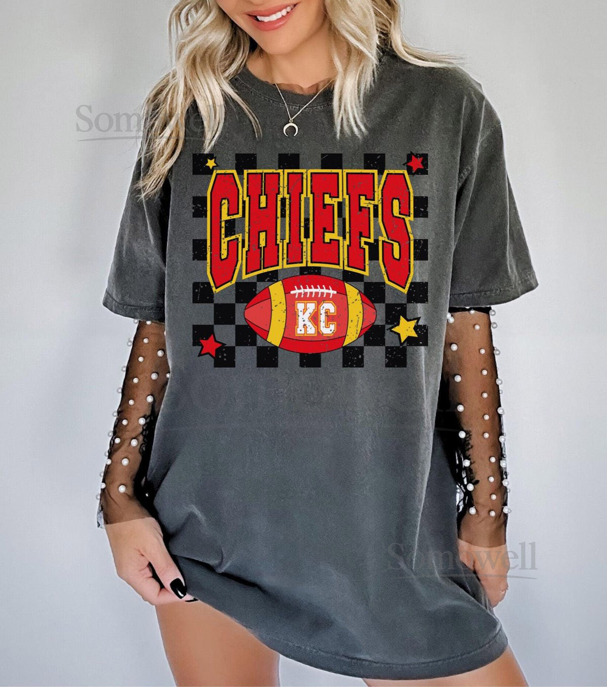 KC Chiefs Shirt Cozy KC Football Shirt with Distressed Print Kansas City Shirt Retro Design_404