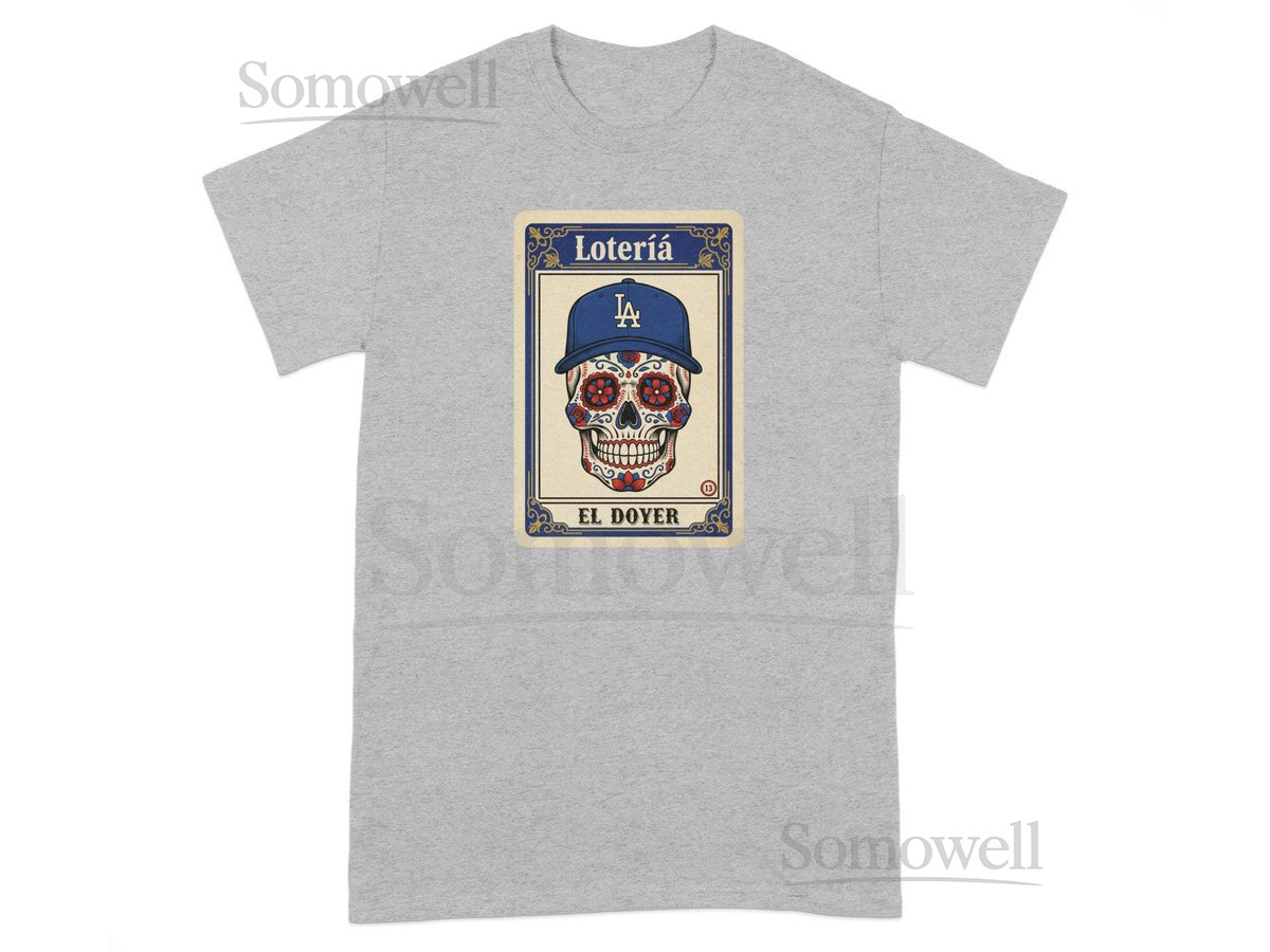 Loteria El Doyer T-Shirt Los Angeles Dodgers Mexican Bingo Dia De Los Muertos Sugar Skull Tee Latino Culture Baseball Fan Shirt_666