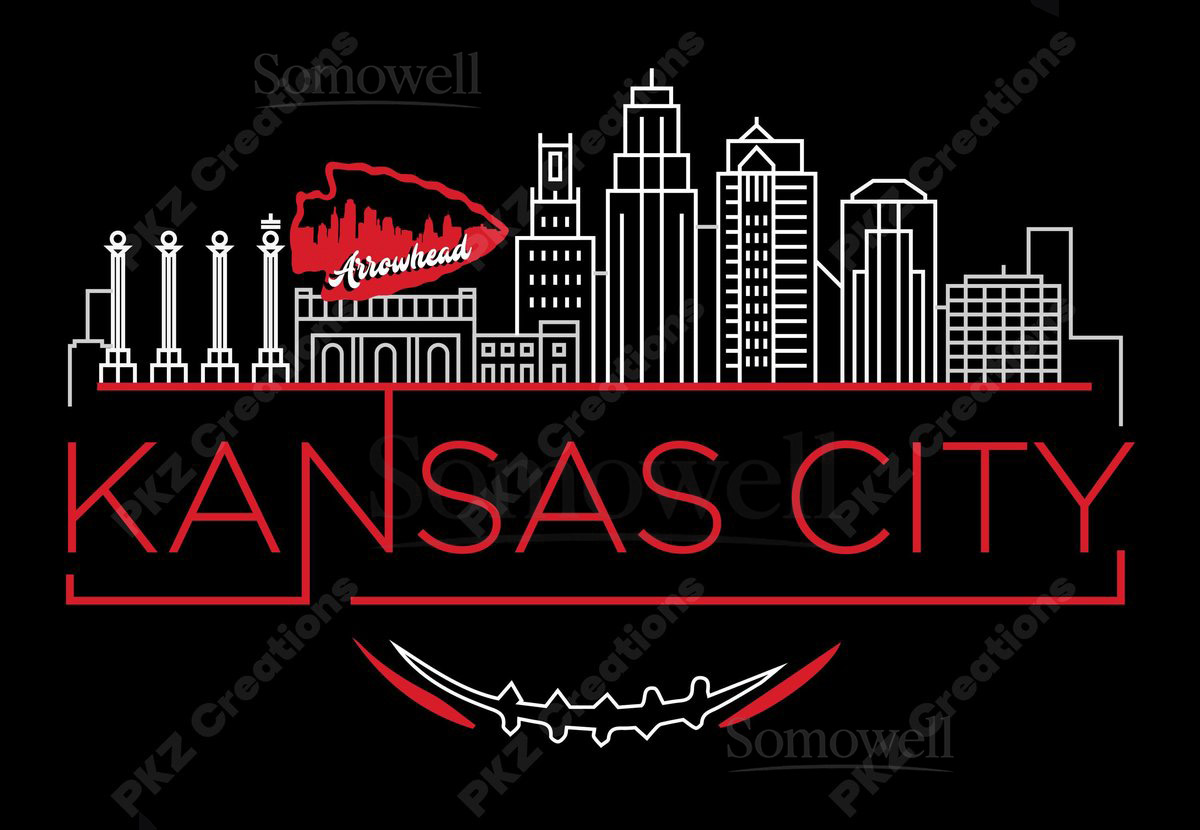 Kansas City Skyline Arrowhead Football Chiefs T-Shirt Kansas City Red White Print Crewneck Shirt Unisex 100 Cotton Tee_386