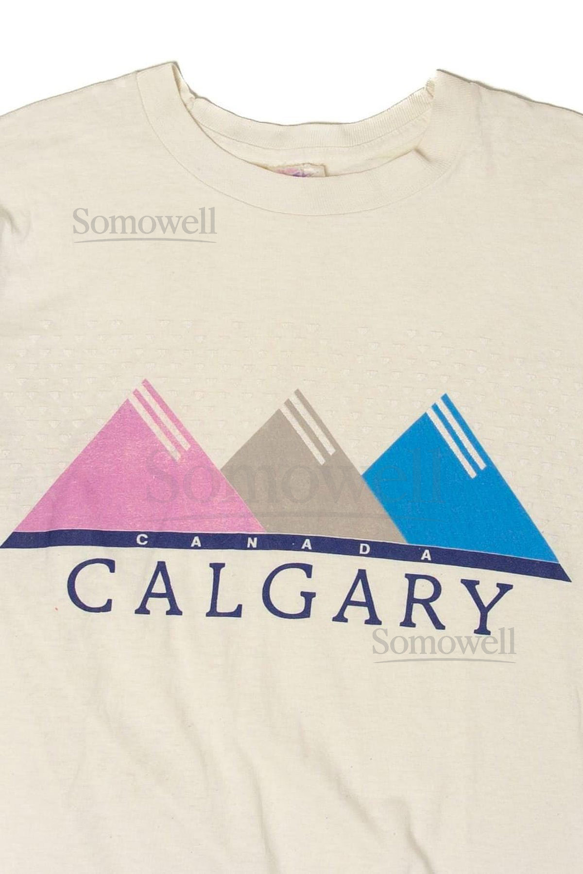 Vintage Calgary Canada Black Gold Ringer 5050 T-shirt Sz M-L Destination Souvenir_414