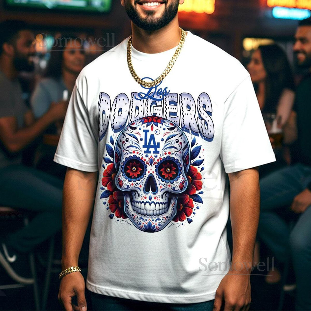 Dodgers Sugar Skull T-Shirt Día de los Muertos LA Baseball Fan Gift_360