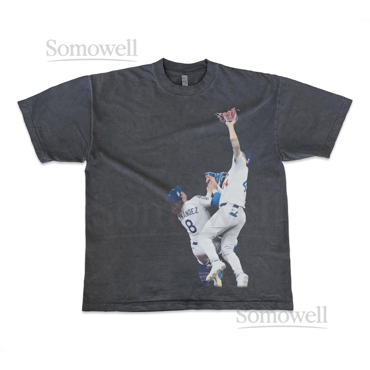 Dodgers Game 7 Andy Page Kike Hernandez Outfield Catch Baseball Vintage Look Oversized Boxy T Shirt Bootleg Washed World Series 2025_320